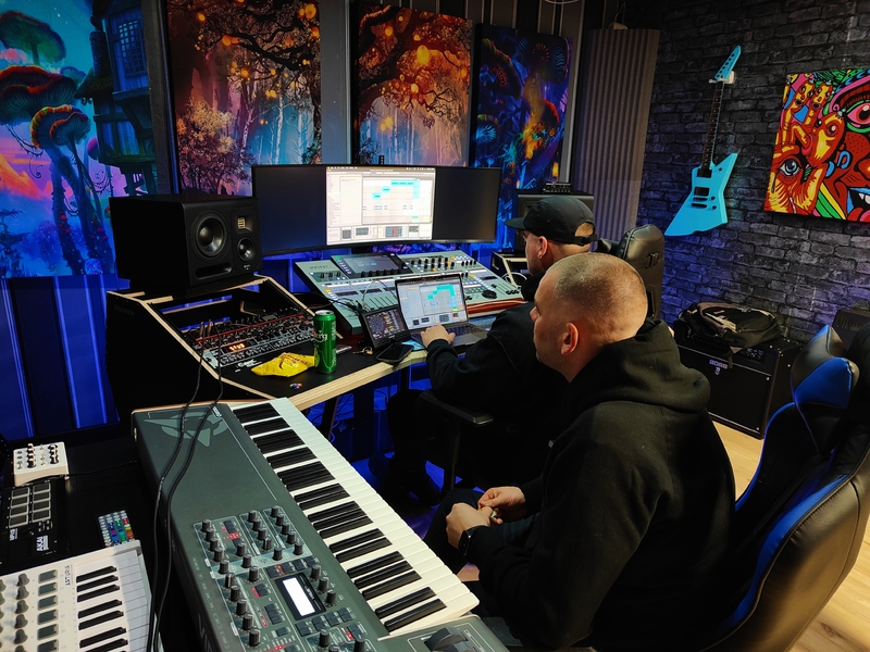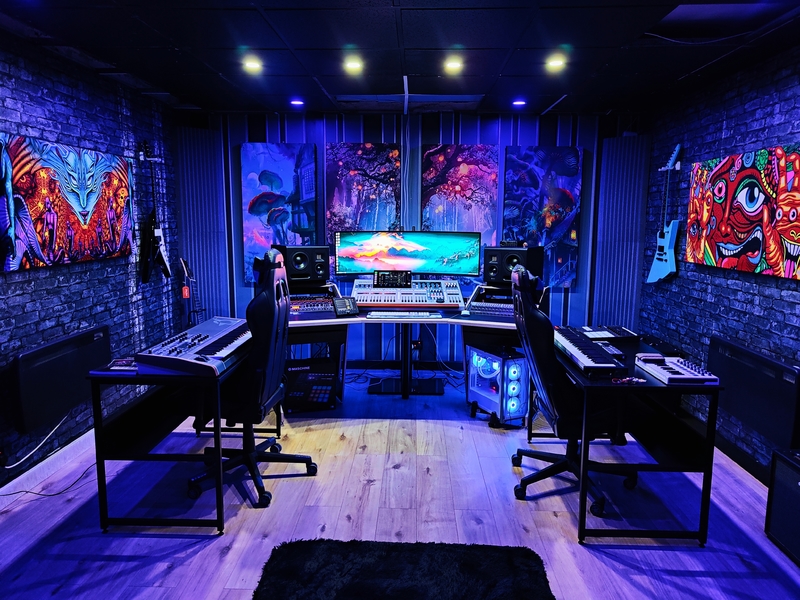 Make use of our production suite with plenty of outboard gear, synths and VST's. Gear includes 48 channel mixing desk with full DAW surface control intergration. Hedd Audio Type 20Mk2 monitors, 61 key midi keyboard, Samsung G9 49" curved monitor, Acc