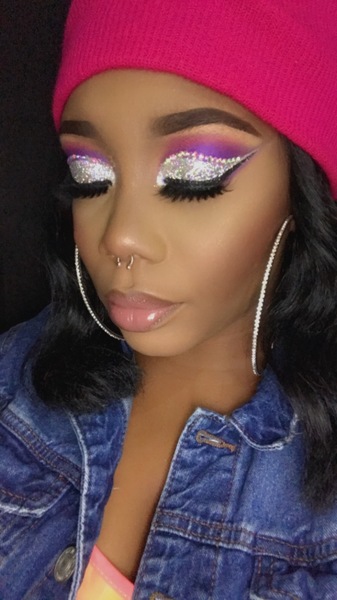 This look includes glitter cut creased eyeshadow. This look is perfect for a birthday. All looks include eyelashes.