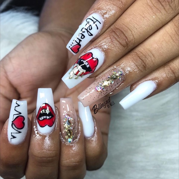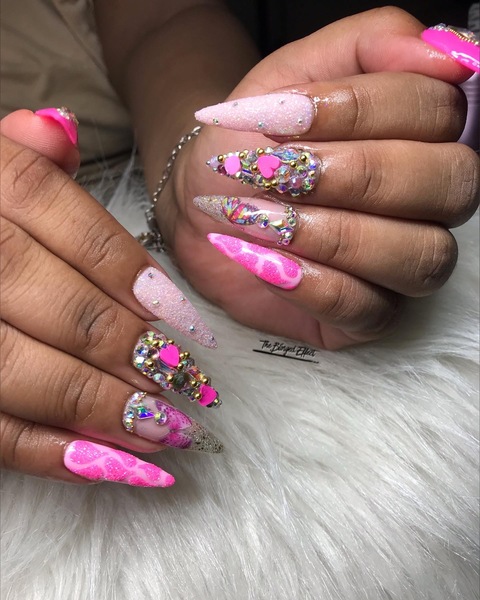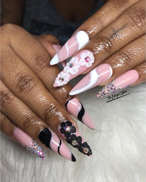 If you enjoy kicking back and getting your nails uniquely styled then this is for you. Freestyle may include glitter, chrome, nail art or diamonds. Can be done in any shape (coffin, stiletto, etc…). Not easily manageable.