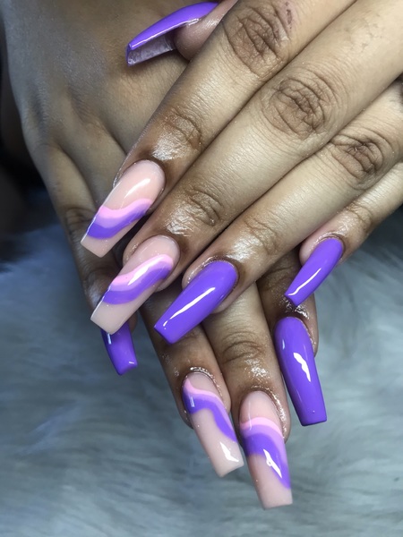 If you enjoy kicking back and getting your nails uniquely styled then this is for you. Freestyle may include glitter, chrome, nail art or diamonds. Can be done in any shape desired (coffin, stiletto, etc…) Not easily manageable.