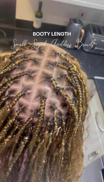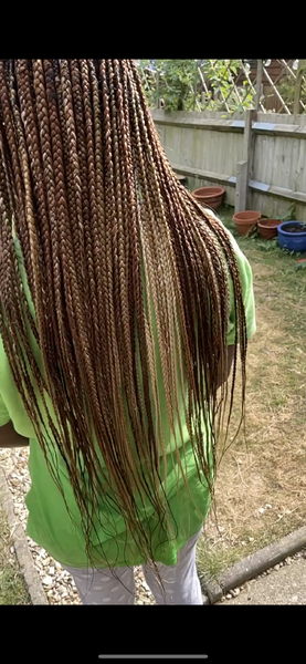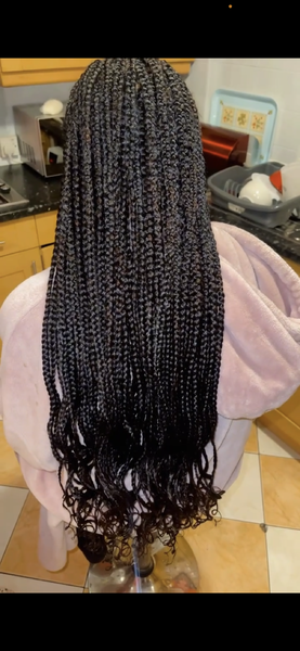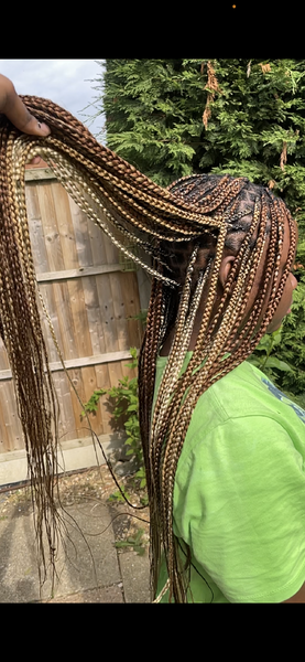 Keep it classic with Box Braids! Prices for large parts start at £70 for mid-back length, £80 for booty length, and £100 for thigh length. For medium parts + £10, and for small parts + £20. This is because smaller partings take more time, so pricing