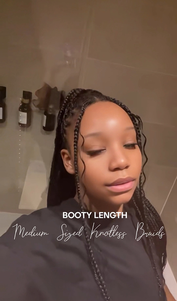 Sis, you can never go wrong with Knotless Braids! ✨ Prices for large parts start at £85 for mid-back length, £100 for booty length, and £110 for thigh length. For medium parts +£10, and for small parts +£20, as smaller partings take more time. The im
