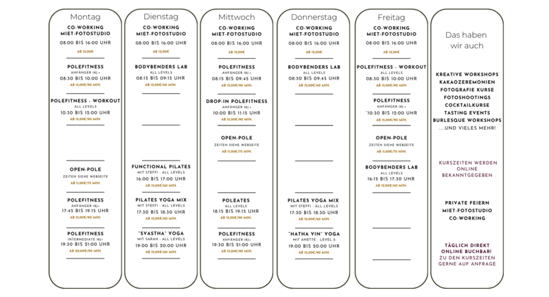 Übung macht den Meister!Montag, Mittwoch & Freitag 12:00-15:00 UhrUnsere offene Polestunde bietet Ihnen die Flexibilität und Freiheit, Ihre Pole-Dance-Fähigkeiten im eigenen Tempo zu verbessern. Egal, ob Anfänger oder Fortgeschritten, hier kann s