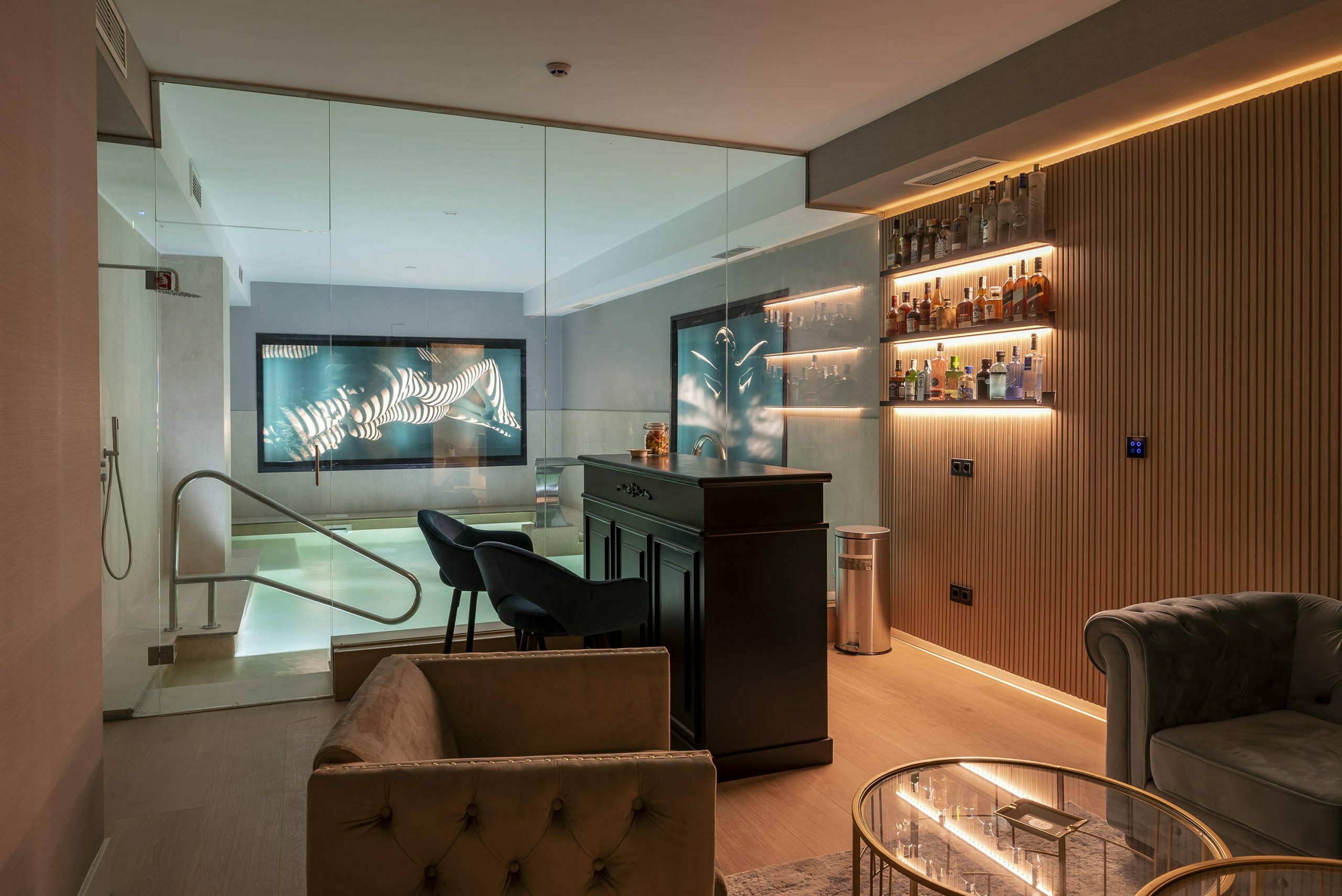 Centro de masajes tántricos y eróticos de alto standing en Madrid, con un cuidado exquisito , tanto en decoración , como detalle e higiene . Nuestras expertas masajistas le harán evadirse y disfrutar . Disponemos de 7 salas y una piscina cubierta , sala de eventos , bar.Gallery