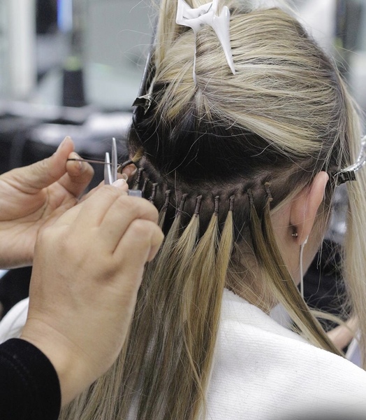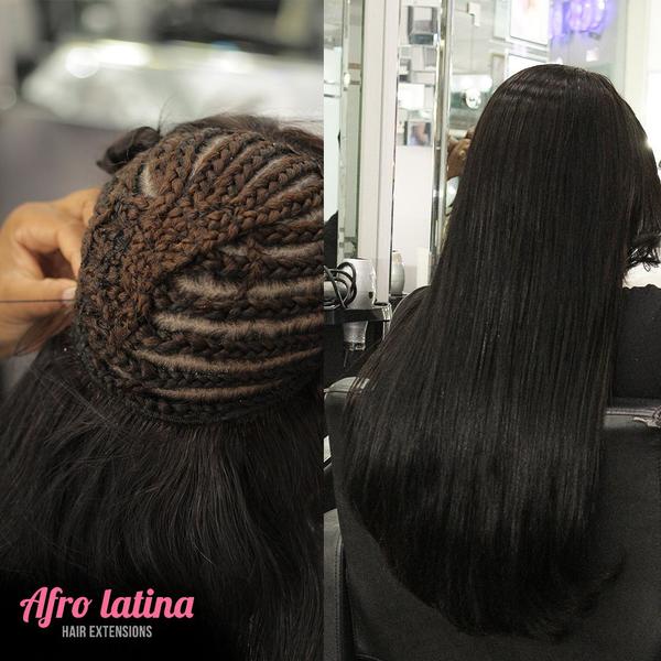 La técnica de colocación de Extensiones de cabello cosidas consiste en realizar una o varias trenzas delgada que después se cose con las extensiones y se adhieren a tu propio cabello.Usamos maquina profesional para unir las capas de cabellos, conside