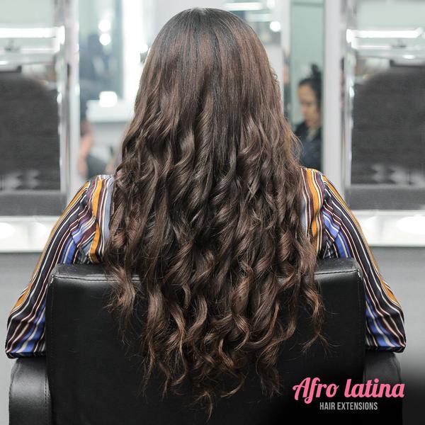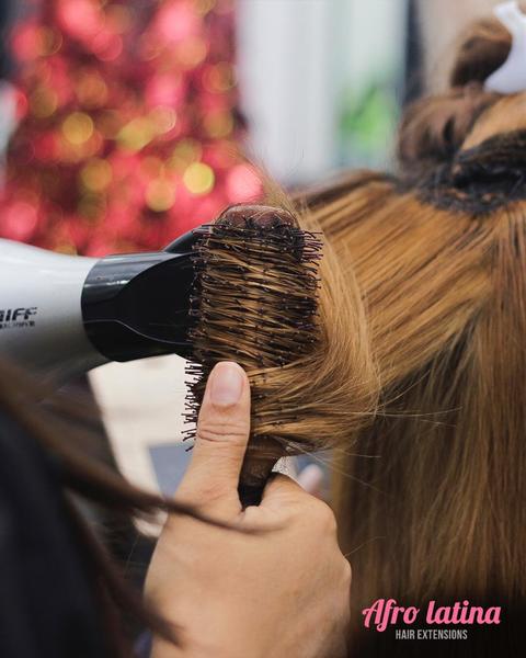 En esta técnica de colocación de Extensiones método brasileña se une el mechón de cabello natural con el de las extensiones mediante un elástico especial y se enrolla varias veces hasta quedar bien sujetadas. Es una técnica con acabado muy natural y