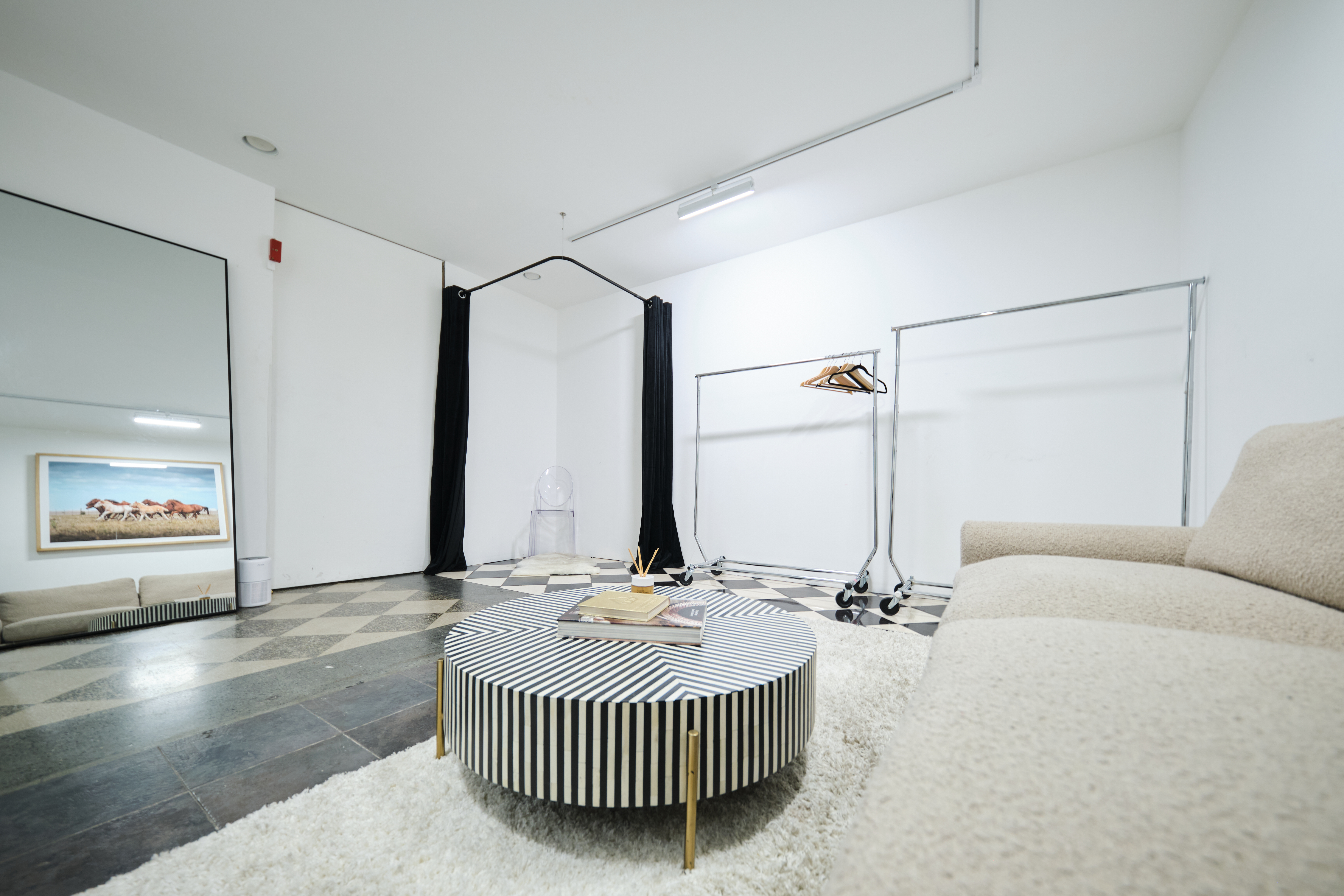 Industrial-Chic Photo Studio & Creative Space in Mid-City LA Welcome to Amato Studio, a thoughtfully designed 2,300 sq. ft. industrial-chic studio and event space located between Koreatown and West Adams in Mid-City Los Angeles. Formerly a historic bank, our ground-floor studio features soaring 20-ft ceilings, original 1920s black and white checkered tile and architectural details that add charm and character, not your typical white-box space! Perfect for creatives, small to mid-sized productions, and gatherings of up to 60 guests, our studio is designed to make your workflow seamless and your experience stress-free. Key Features: • Ground-floor access with double doors and assigned parking for easy load-in/out • 20’W x 16’H white cyc wall • Backdrop/Seamless collection included • Prop selection and basic lighting package included • Original architecture and custom furnishings throughout Amenities: • Private wardrobe room with lounge and changing area • Dedicated hair & makeup room with 2 Hollywood vanity stations and sink • Conference area w table • Restroom • Kitchenette with mini-fridge, microwave, and coffee station • High-speed Wi-Fi • A/C • Bluetooth sound system • iPad with Spotify/Apple Music access • Jiffy steamer • 4 rolling racks • Folding tables/chairs • 3 dedicated circuit /6 outlets in studio area Included Equipment/Grip: • (1) Aputure 600D • (6) Matthews C-stands • (2) Mini rollers w/ overhead arms • (6) Sandbags • (2) V-flats • (1) 6x6 black cloth • (1) 12x12 black cloth • (2) 50ft stingers • (1) Apple box • (1) Cart • More upon request Additional Perks: We work with trusted local vendors for gear, prop, and event rentals, all within a mile radius. Let us know what you need and we’re happy to coordinate. IG: @amato_studio We look forward to hosting your next production!优惠&促销