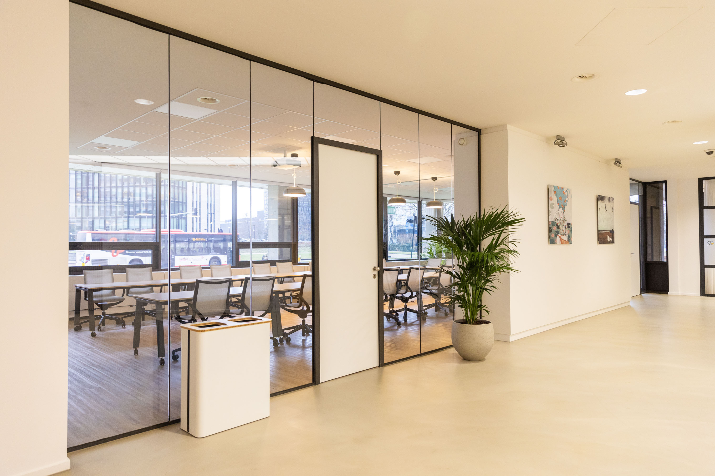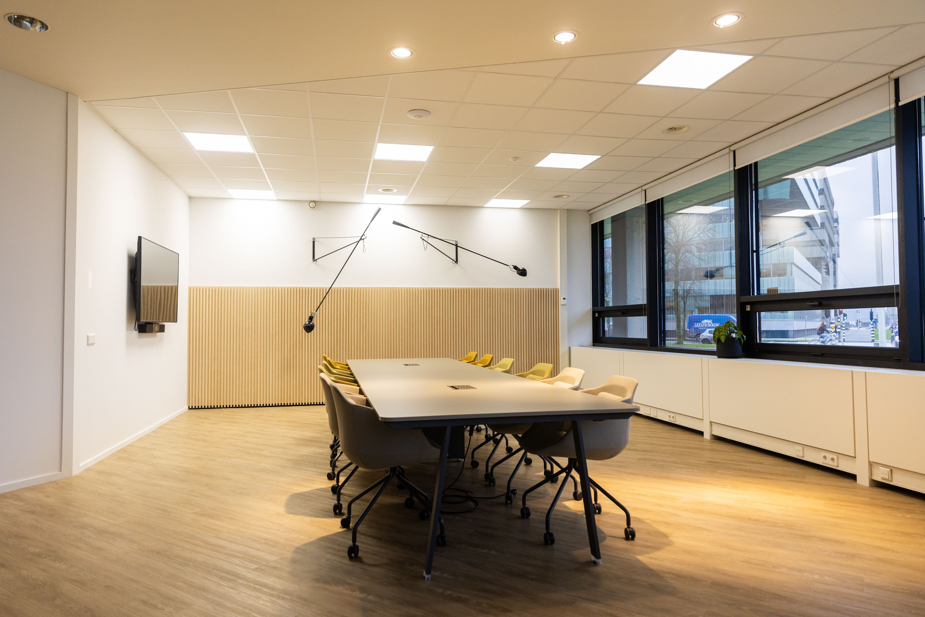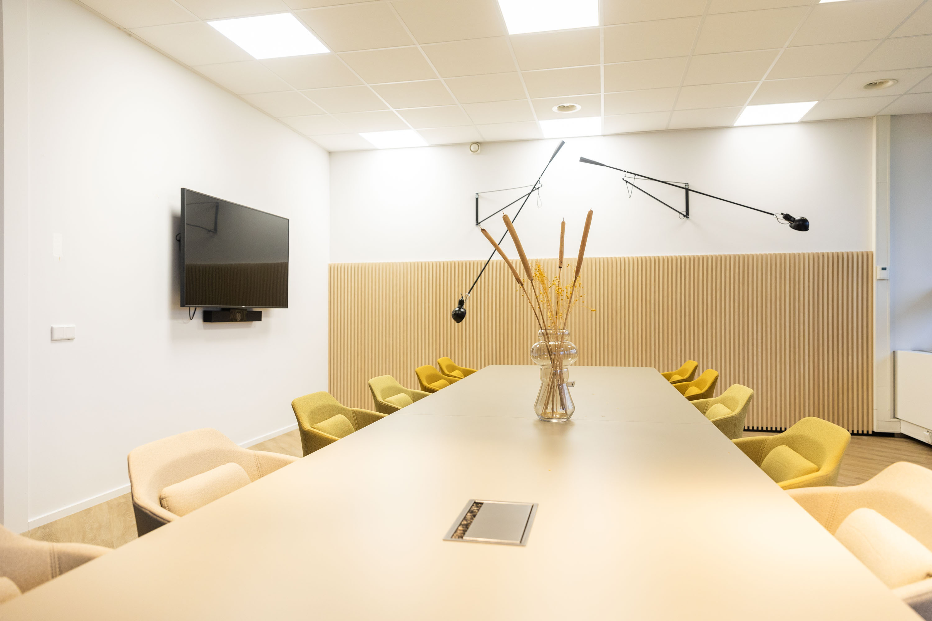 Meeting room 2 is spacious with room for a break-out, offering room for up to 12 people in a long table set-up. This meeting room is ideally suited for longer sessions and meetings.