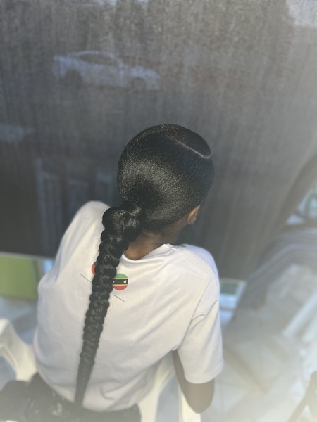 Our "Ponytails Braided Extension" service offers a stylish and convenient solution for clients looking to enhance their hair. This service requires clients to ensure their hair is product-free prior to application. Each appointment includes the use o