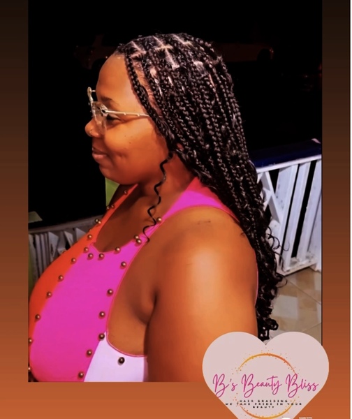 Our Medium Goddess Braids service offers stunning braids that fall to mid-back length. This style uses 4 packs of x-pression braiding hair. To ensure the best results, clients should have clean, oil-free hair that is blow-dried before the appointment
