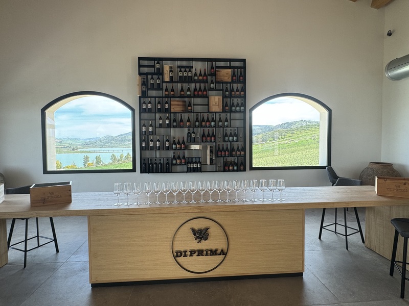 the tasting includes: the Organic Grillo del Lago DOC Sicilia, the Organic La Risinata Chardonnay DOC Sambuca di Sicilia, the Organic Catarratto IGT Terre Siciliane Lucido Orange and the Organic La Matrice Nero d'Avola DOC Sambuca di Sicilia with the