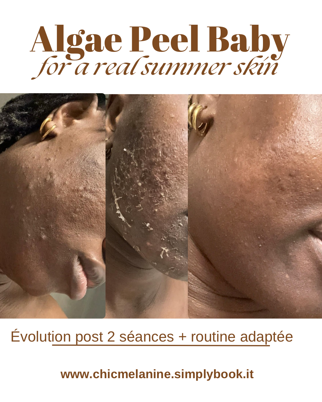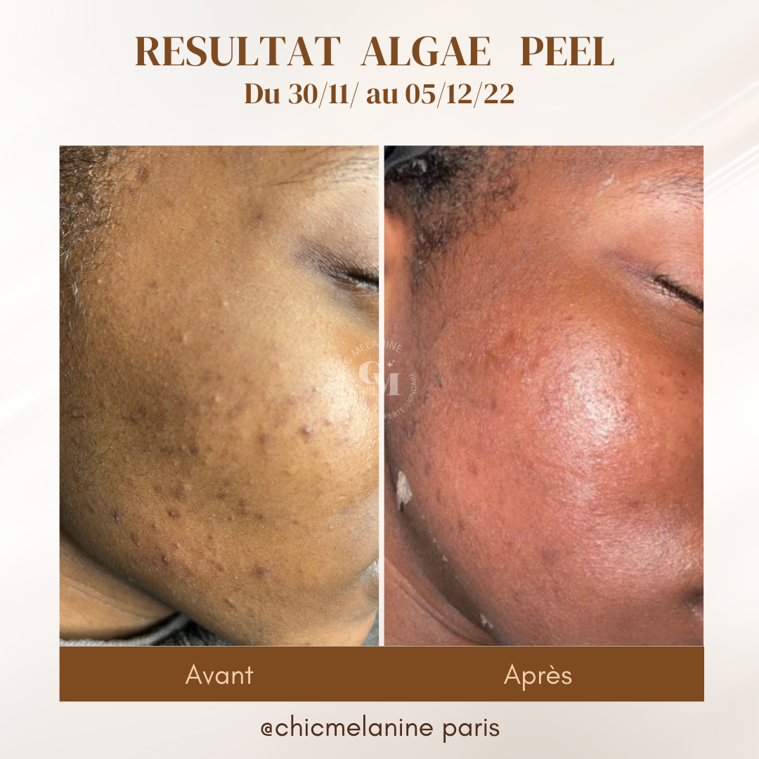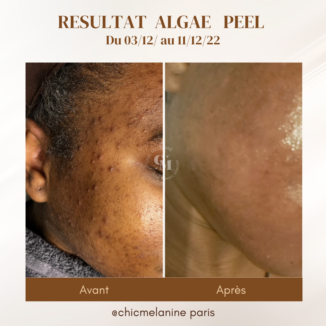 Le soin Algae peel consiste à appliquer sur votre peau, une solution de peeling naturel composée de pointe de corail, de vitamines et de minéraux, qui va causer un dommage contrôlé, ayant pour résultat la régénération épidermiqu