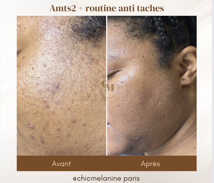 L’AMTS2 est un soin traitant réalisé avec un dispositif muni de 9 aiguilles qui vont faire pénétrer des sérums personnalisés sous la peau, à raison de 6000 trs/minute. Cette puissante vitesse de rotation des aiguilles permet à ce soin