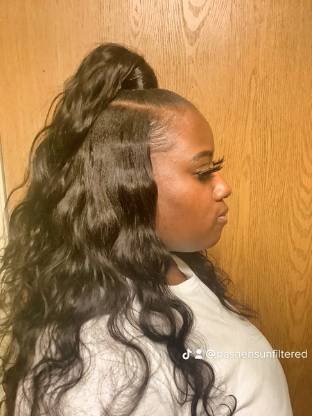 This includes styles with extensions and added hair. Ex: sleek ponytails, half up half down quick weave and etc.Hair is not included. Hair will need to be purchased by client and brought to the appointment.Price shown is base price and can vary depen