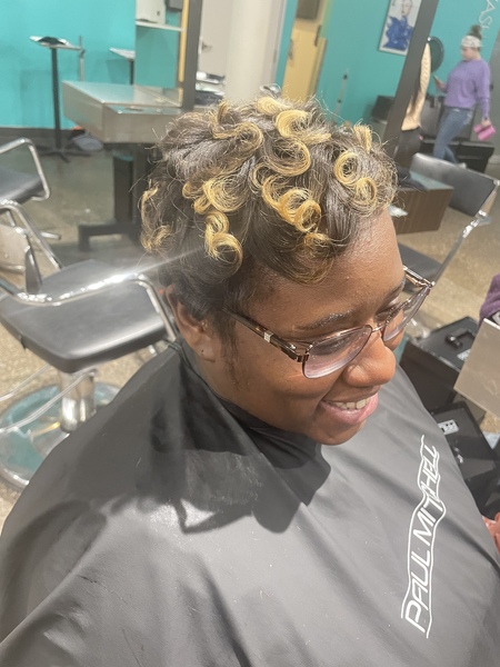 Lightner/Bleach/highlights Post color treatment included in service. Included with service is shampoo and blow dry