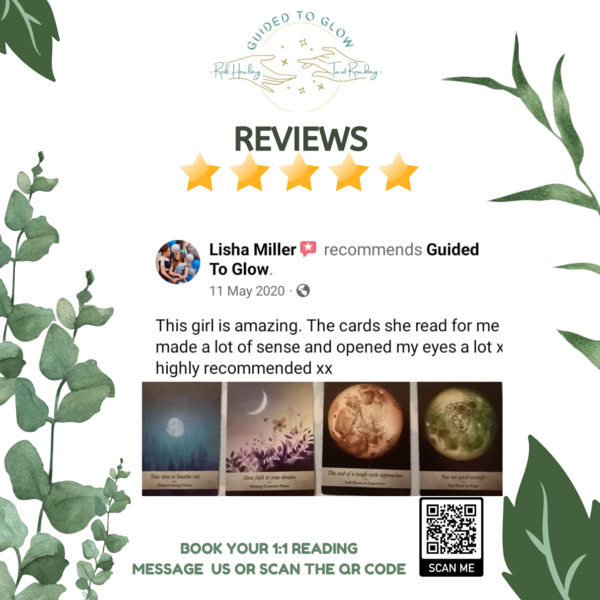 Welcome to Guided to GlowIf you are here because you feel out of balance or lack of energy of some sort of just want to keep on top of that good feeling, then let me, Chrissie, guide YOU to your GLOW✨I am here to use my gifts to help you on your journey.My healing services include: Reiki therapy (Can be sent anywhere in the world)Helps you align within, removing or guiding you with any obstacles you may be going through.Hands-on or in-clinic servicesAvailability on Saturdays only 14:00-18:00Deposits are required to secure your booking. This will be taken off the total on the day.Refunds are non-refundable.If you cannot make the appointment for any reason 72 hours notice is needed, so we can reschedule you, otherwise your deposit may be lost.Intuitive tarot/oracle reading (Online)I use tarot reading as a tool to move you forward with guidance by our beautiful universe. For more information read the description of the service you are interested in.If you have any questions, please feel free to message me or email me and I'll get back to you as soon as I can.Alternatively book your treatment today and thank you for your support.Chrissie Guided To Glow..Online services have a 3 business day turnaround. You will be sent your reading report/confirmation of your distant reiki within 3 business days of making a payment.How to book an online service.Go to 'BOOK NOW' Choose the service you would like. (I.e Distant reiki or Tarot reading)Click on the date you are booking (choose anytime it's not applicable)..You will then be contacted to complete the payment to confirm your booking.作品图集