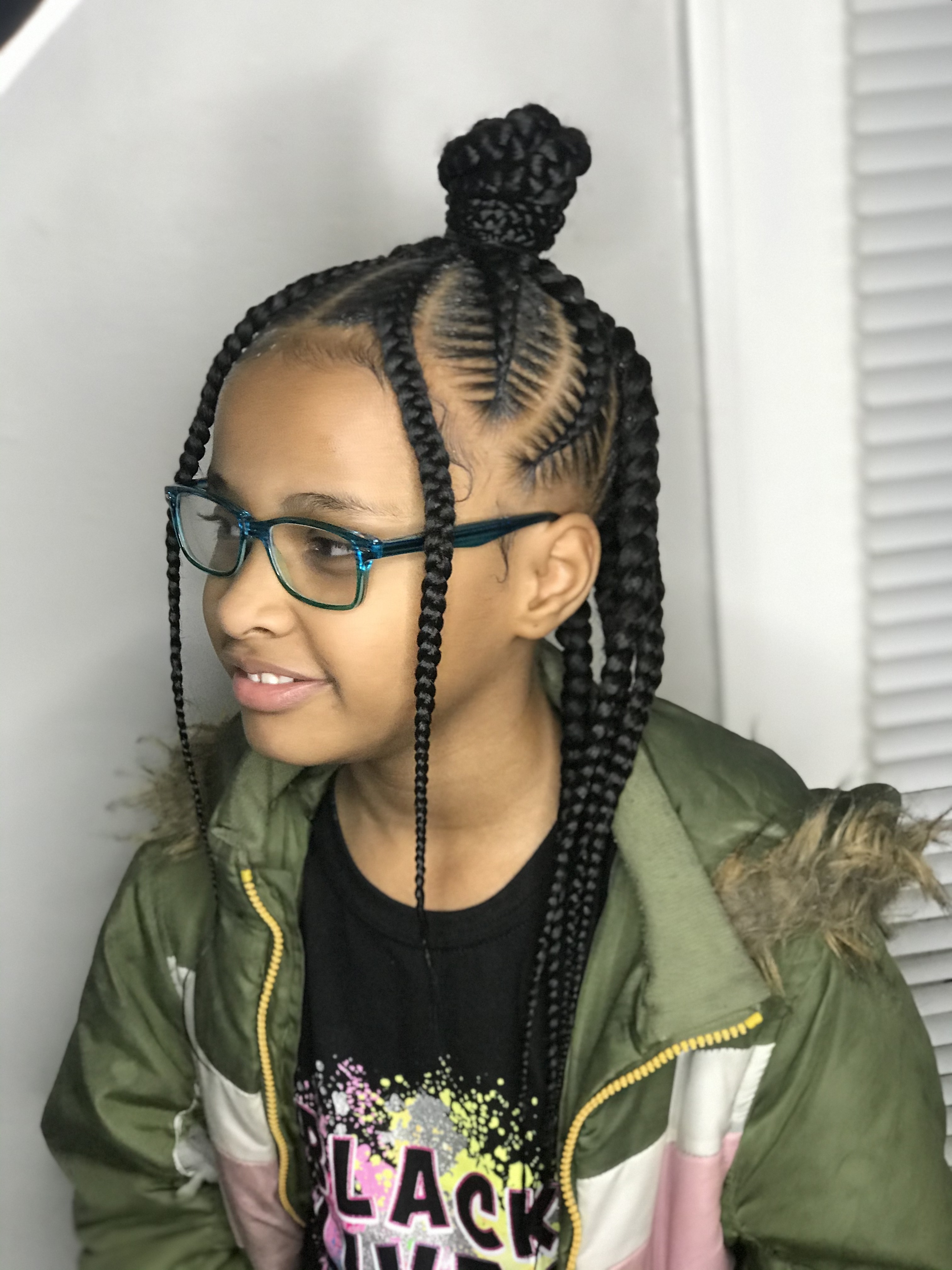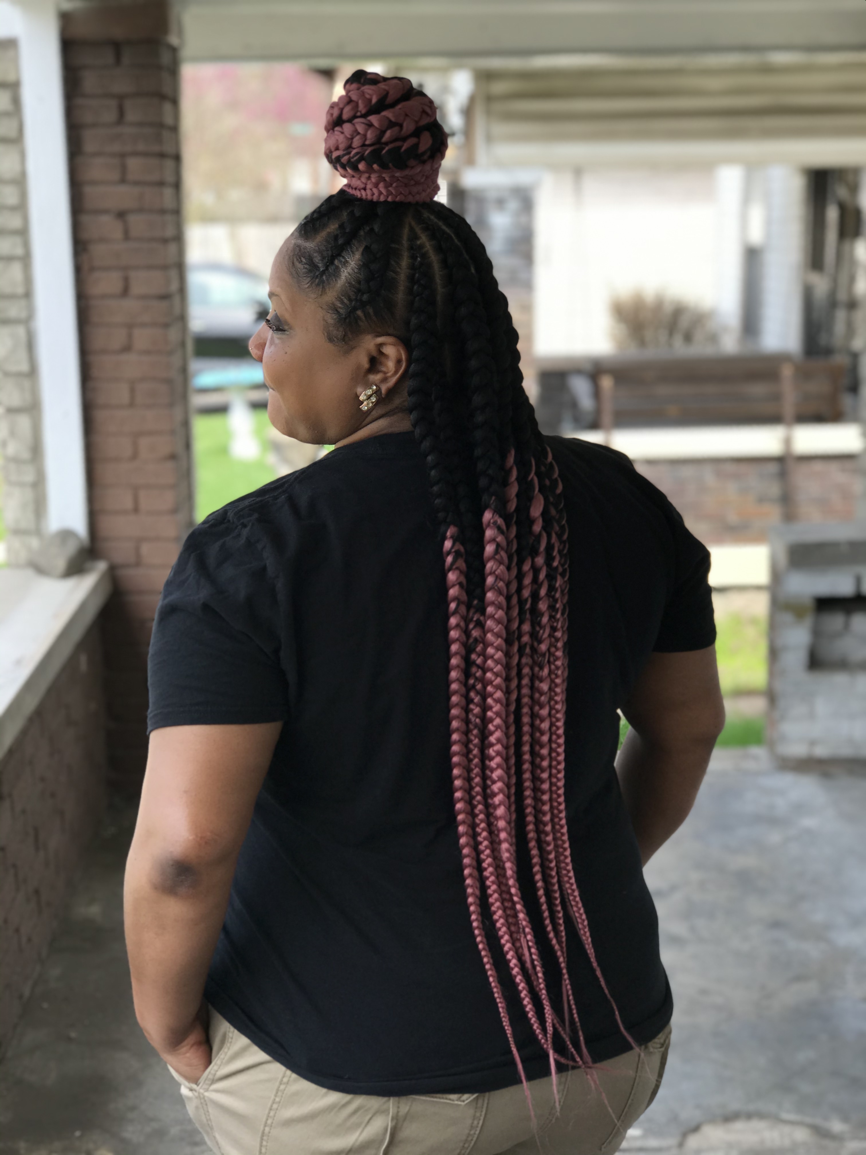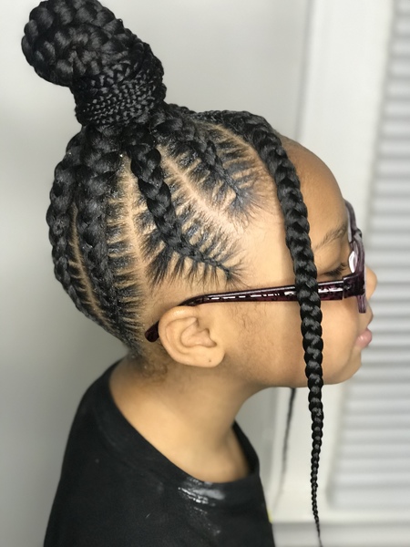 Knotless braids in the back, cornrows in the front.Can be worn 1/2 up 1/2 downHave a inspirational pic? Send it to me.