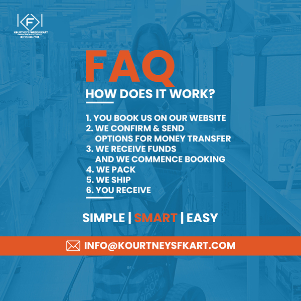 Kourtneys Foreign Kart LLC is a export shopping company that offers services like instacart. We shop for clients, pack and ship to them worldwide.优惠&促销