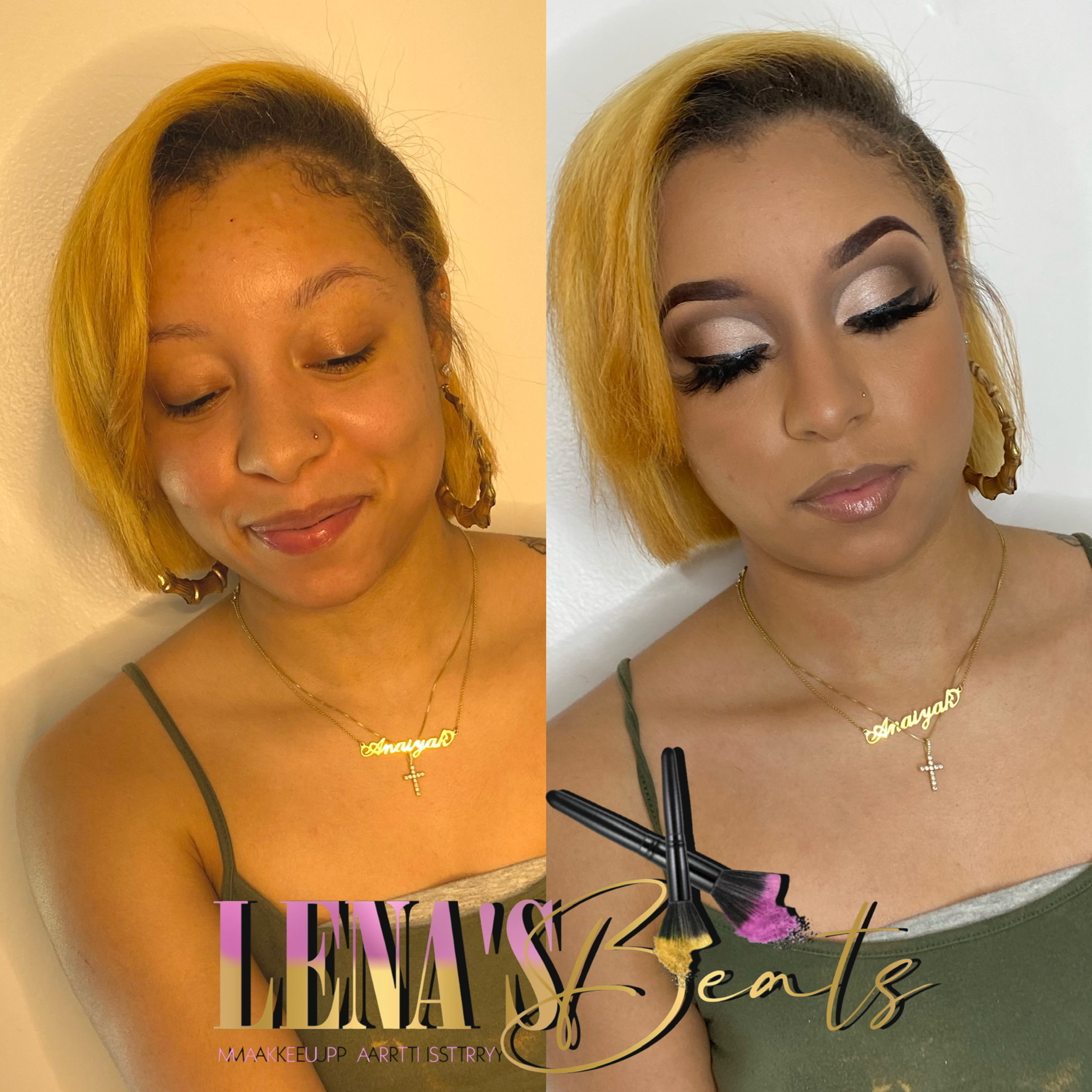 This service may include glitter, cut crease, or smokey eye, a brow fill-in (I DO NOT arch eyebrows) foundation, highlight, contour, lips, & lashes. Service is $60. A $20 non-refundable deposit is required to book. Payment must be sent in order for m
