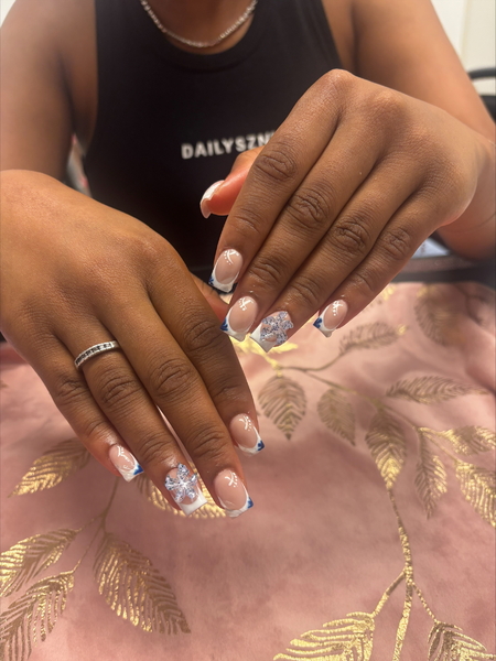 Short set - Inc. Design: french, rhinestones, stickers, glitter.