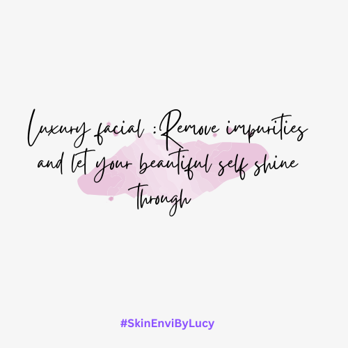 Luxury Facial tailored to your skin type. With double deep cleansing, enzyme peel exfoliation, facial massage, hydrating hyaluronic mask finished with hyaluronic serum, deep moisturiser and SPF 30 for a radiant glow. Also includes scalp and hand mass