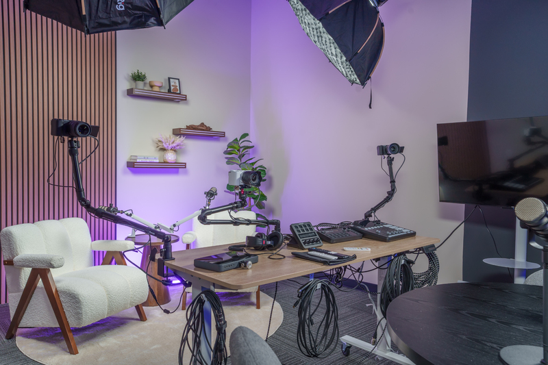 A full-day professional production experience.Best for: ● Full brand campaigns ● Corporate shoots ● Agency content days ● Product launches ● High-scale social production Podcast booth not included.Includes access to our 3,500+ sq ft professional co
