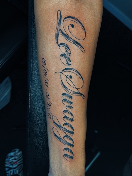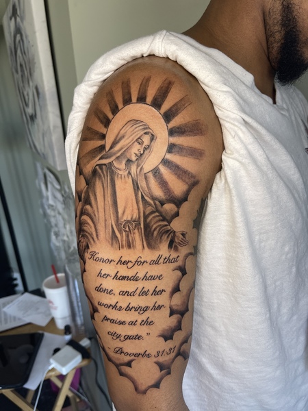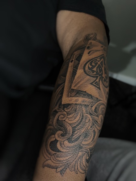 The would be a full chest/stomach piece or a leg/arm sleeve. I CHARGE 130 FOR BLACK AND GREY AND $150 FOR COLOR AN HOUR!!! *you may need to book more than one session*