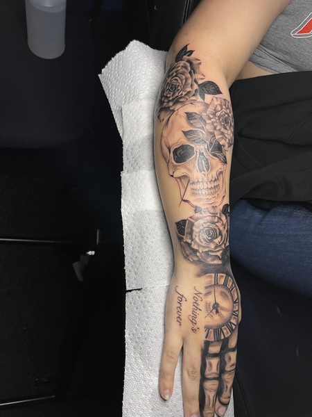 This would be a quarter sleeve, I CHARGE $130 FOR BLACK AND GREY AND $150 FOR COLOR AN HOUR!!!