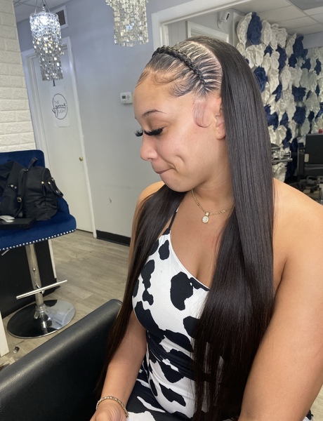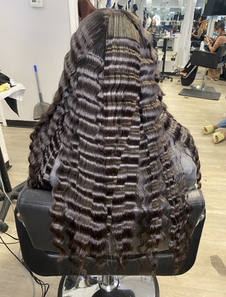 Hair will be pressed, molded and extensions will be attached. Must bring two bundles of weave hair.**must come washed and blow-dried (no products/oil) unless added on while booking**