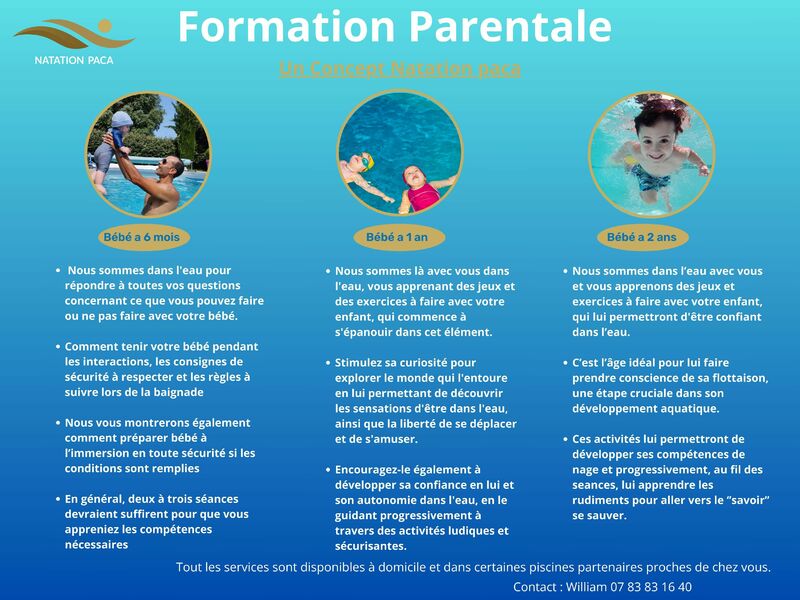 Durée de la prestation ( 30 min dans l'eau et 10 min prise de contact , bilan , logistique )Tarifs 30 EUROS Lieux Waiora Gap Cours collectif 5 enfants maxCréneaux les mercredisInscriptions par téléphone ou message uniquement0783831640