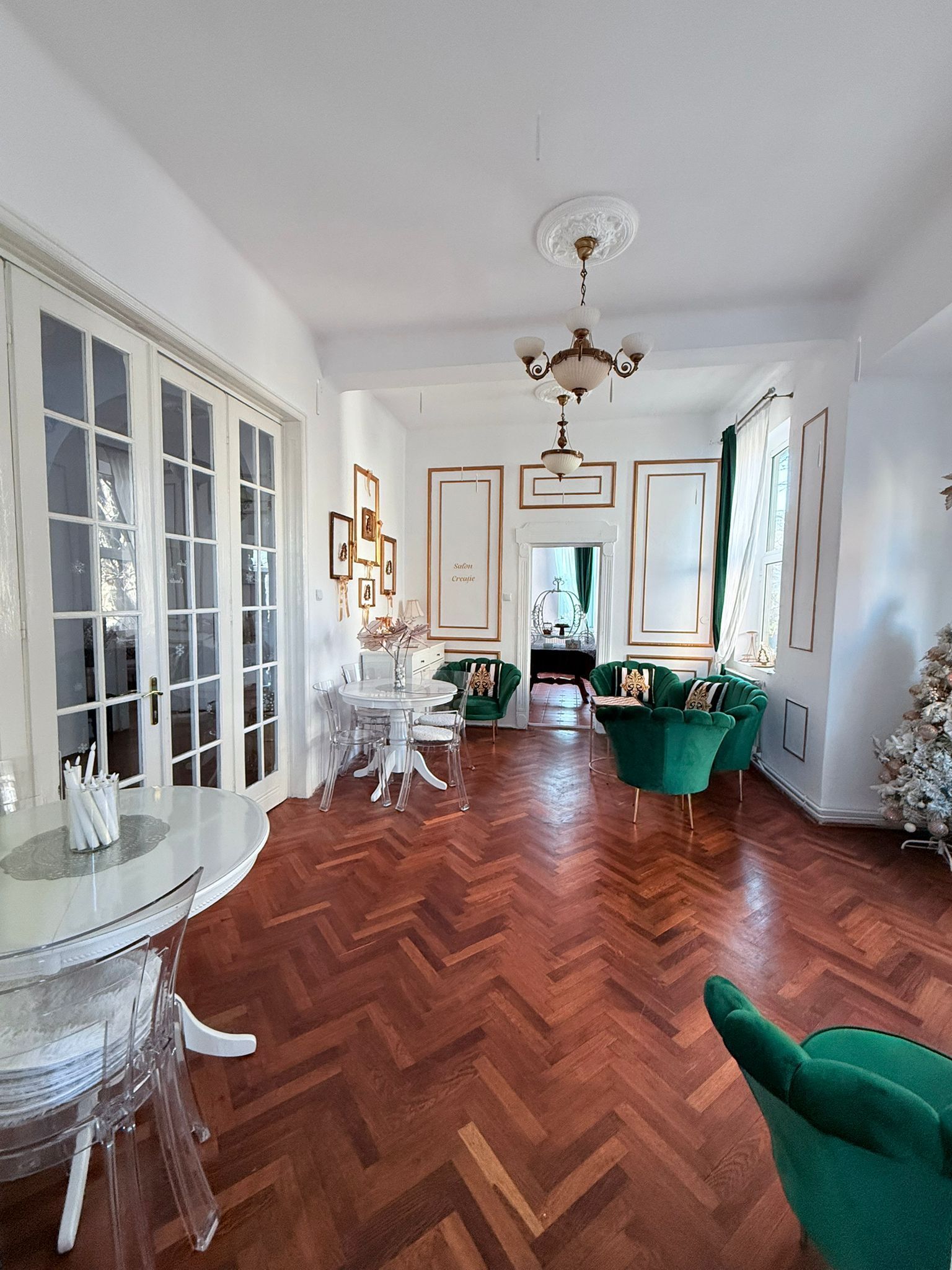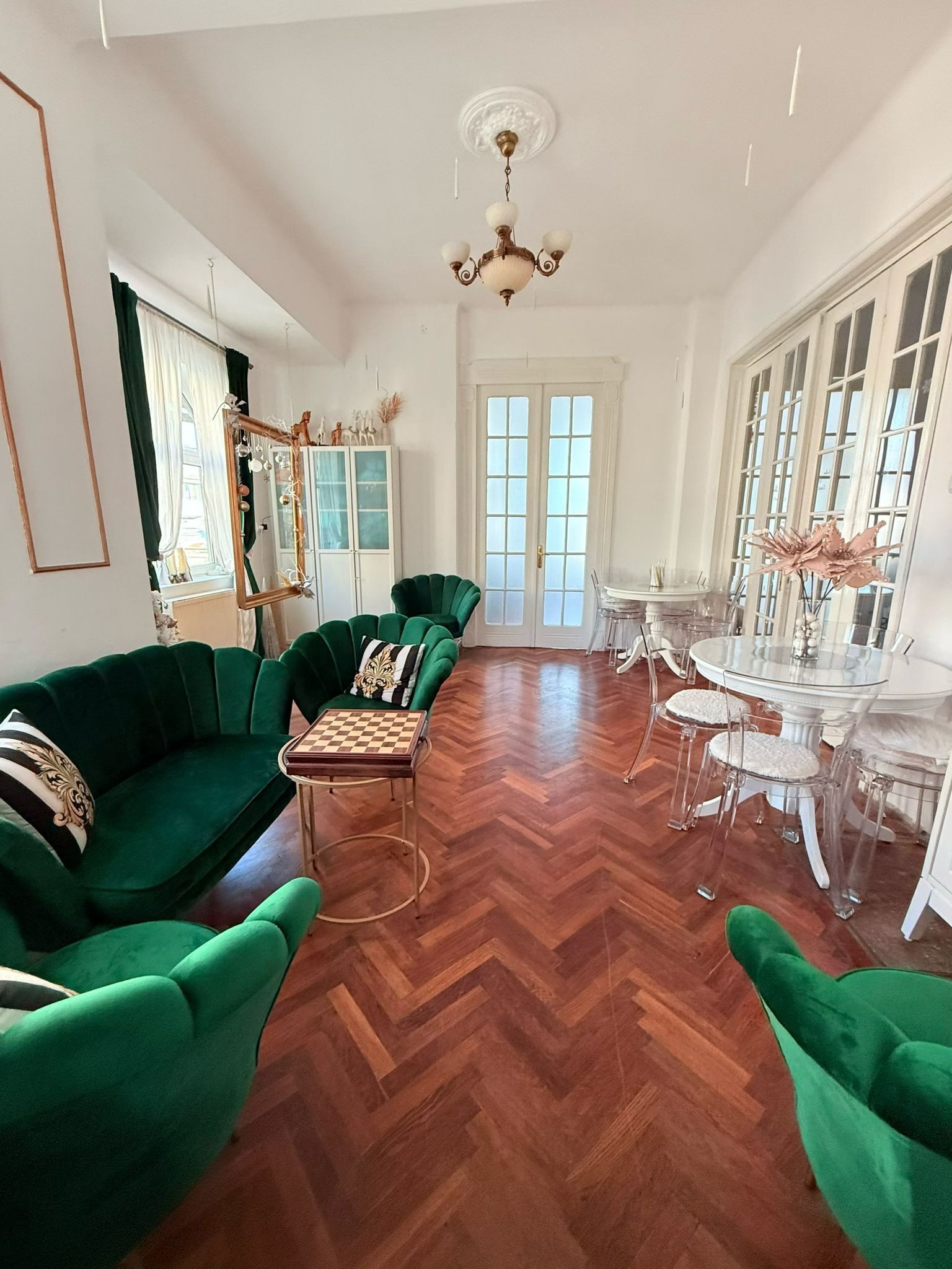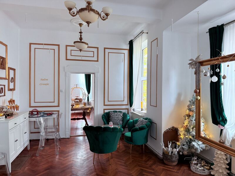 Vila Florilor este un spațiu elegant, amplasat central în București, ușor accesibil, gândit ca un salon urban cu aer interbelic.Este luminoasă, curată și complet mobilată, dedicată activităților care cer rafinament, liniște și un cadru estetic instagramabil.Spațiul este decorat cu numeroase proiecte handmade și obiecte atent alese, ceea ce îi conferă personalitate și caracter, fără a deveni încărcat.Vila dispune de șapte saloane interconectate, fiecare cu identitate proprie, potrivite pentru activități diferite desfășurate simultan sau pentru închirierea întregului spațiu. Toate saloanele sunt mobilate și pregătite pentru utilizare imediată.În plus, include o aie cu cabine separate pentru doamne și domni, o terasă dedicată pentru fumat și socializare, precum și o curte urbană. În curte se află un igloo decorat pentru fotografii și o platformă cu leagăne tip cuib, potrivită pentru pauze sau momente de relaxare.Vila Florilor este potrivită pentru ateliere creative, evenimente private restrânse, ședințe foto sau filmări, întâlniri în grupuri mici, sesiuni de lucru sau coworking. Nu este un open space aglomerat și nu funcționează ca spațiu de tranzit.Rezervarea se face pe intervale orare de minim 2 ore, cu disponibilitate afișată în timp real și confirmare automată. Spațiul poate fi închiriat pe saloane individuale, în combinații flexibile sau integral, în funcție de nevoile voastre.Gallery