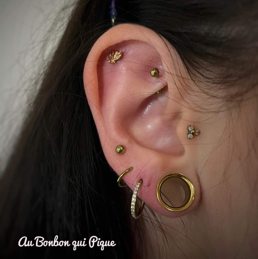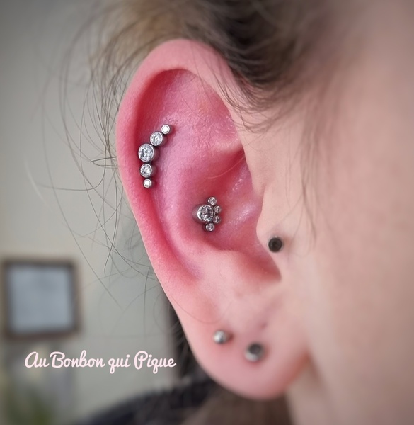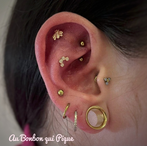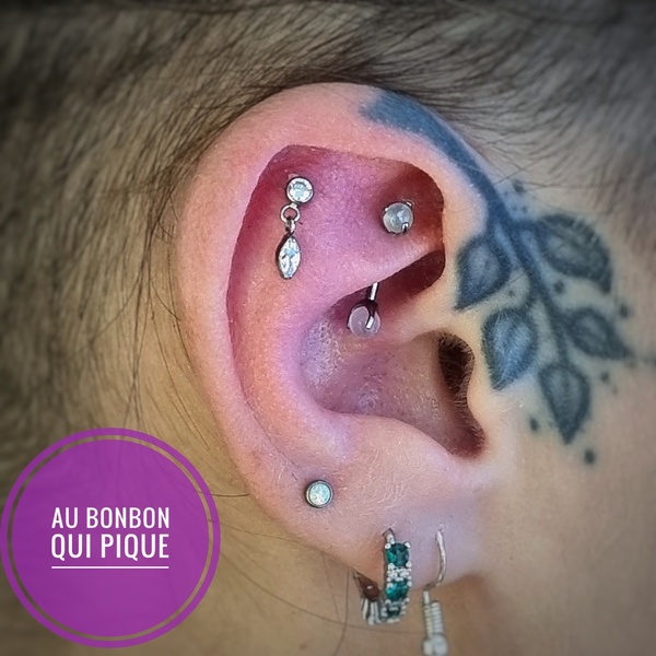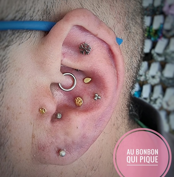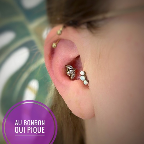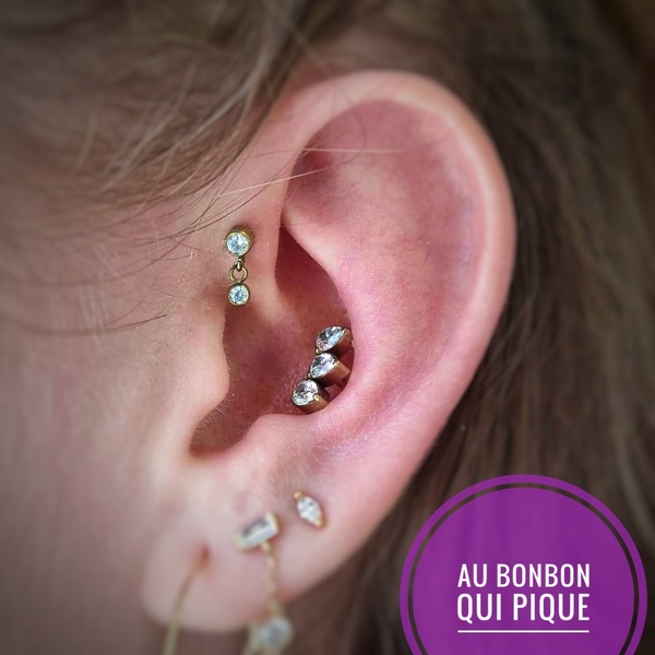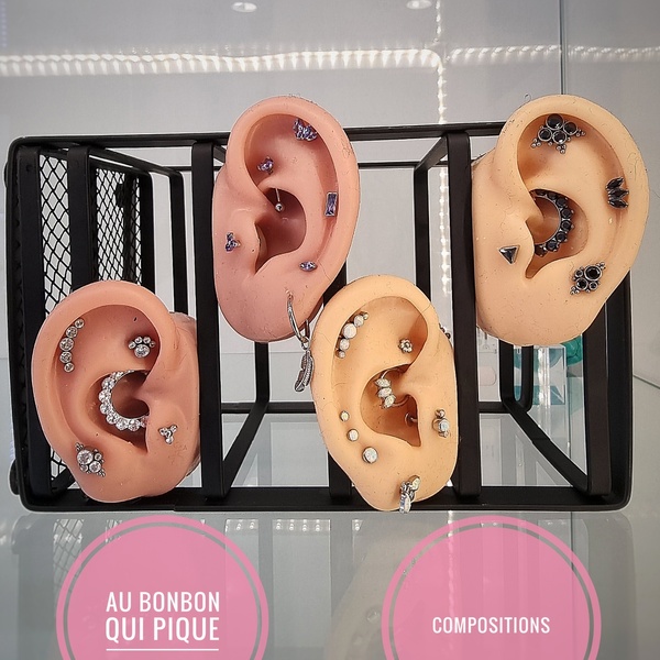 Sur la même oreille uniquement, cette option permet de nous laisser plus de temps pour discuter du projet, choisir un assortiment de bijoux et percerLe prix dépendra totalement de votre budget et des bijoux choisis, comptez 40€ par prestation +