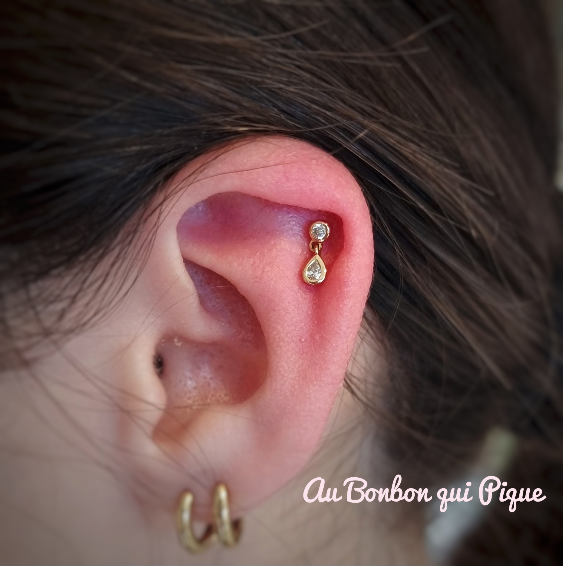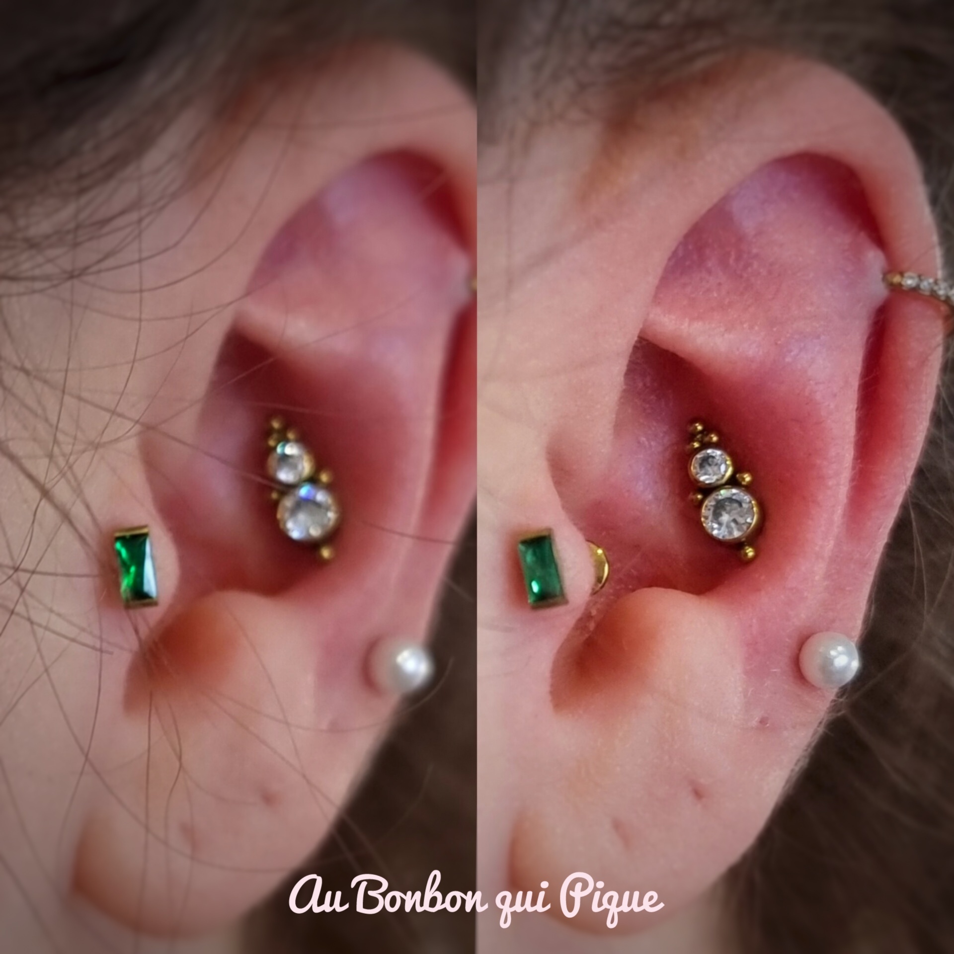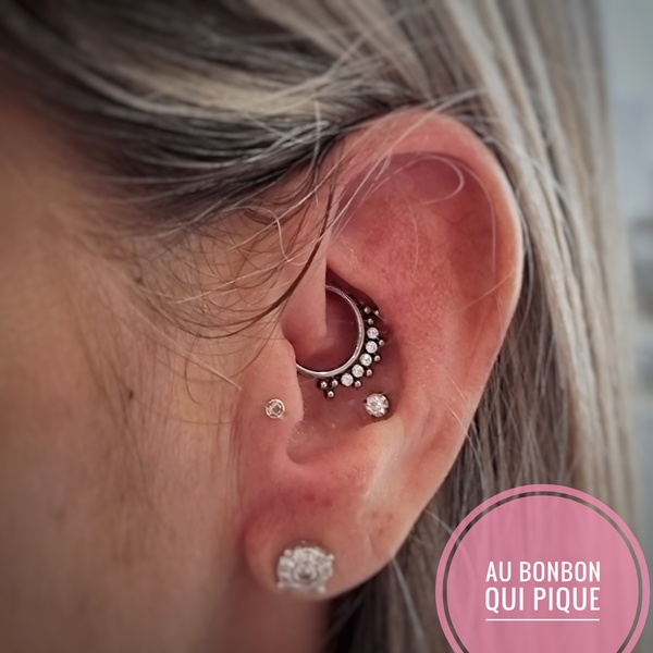 Sur la même oreille uniquement, cette option permet de nous laisser plus de temps pour discuter du projet, choisir un assortiment de bijoux et percerLe prix dépendra totalement de votre budget et des bijoux choisis, comptez 40€ par prestation +