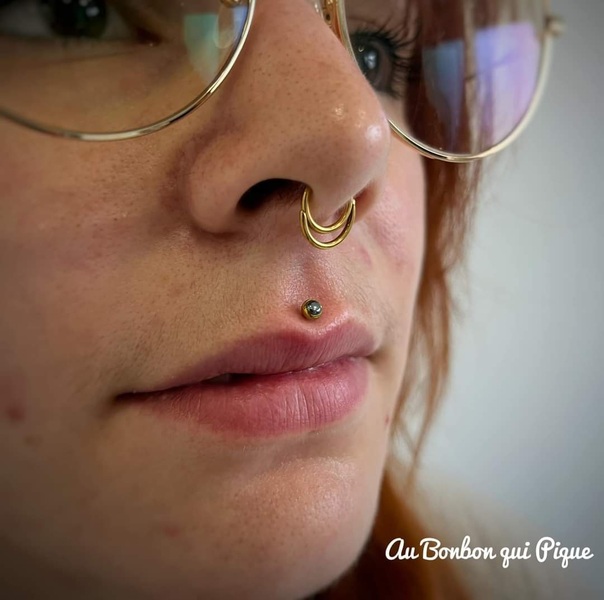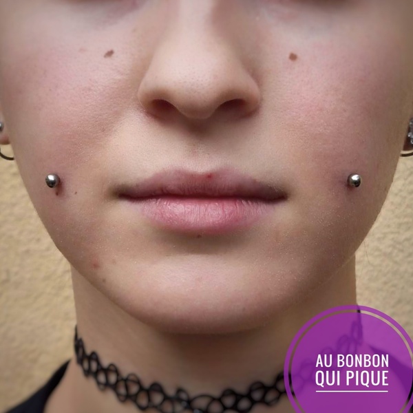 Perçage du tour de bouche, précisez lequel vous souhaitez ( labret centré, décalé, vertical, medusa, madona, jestrum,...Le prix du perçage est de 50€ + le prix du bijou choisi lors du rdv apd 20€