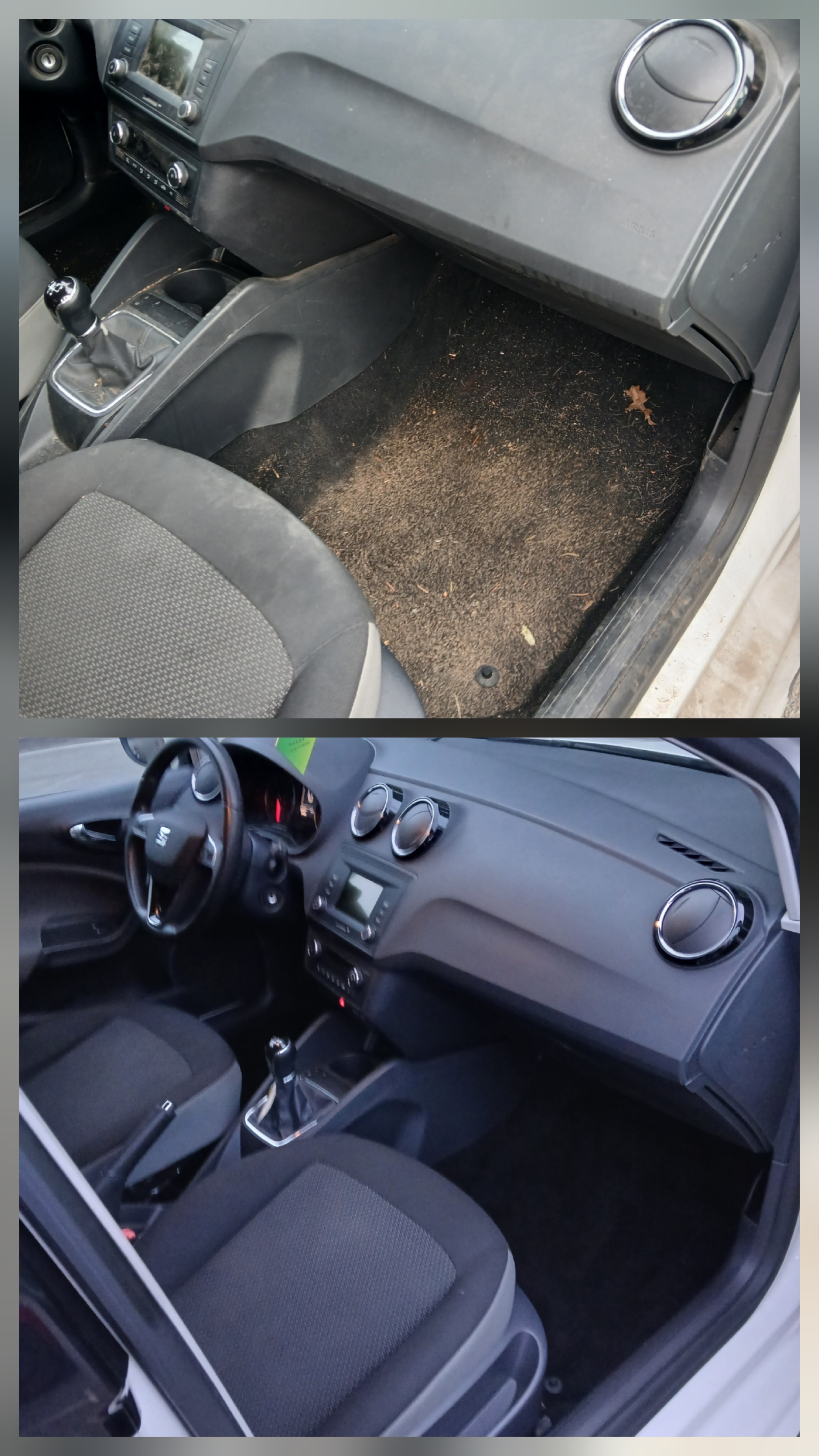Formule Essentielle — Nettoyage intérieur 45 € → 80 € (selon l’état et le modèle du véhicule) Aspiration complète (sièges, tapis, coffre) Aspiration des recoins + soufflage à l’air comprimé (joints de portes, seuils, coutures) Dépoussiérage min
