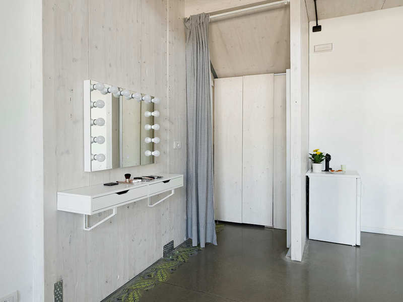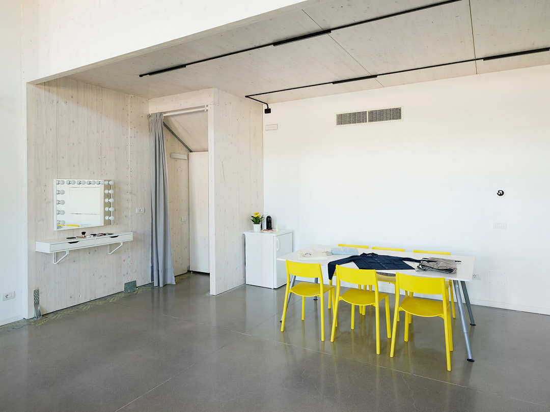 Uno spazio grande abbastanza da poterci allestire tranquillamente un doppio set per figura intera senza sentirsi allo stretto, lasciando posto anche per la merce e gli addetti ai lavori. Attrezzatura professionale inclusa nel prezzo! Il noleggio stan