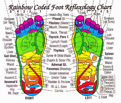 Using acupressure points on the feet Reflexology treats all the organs and systems of the body.The therapist ‘walks’ the zones with their thumbs identifying areas of dis-ease and utilises their fingers and hands to work on the areas of discomfort res