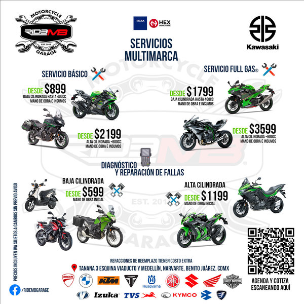 - Kawasaki Viaducto, Av. Monterrey No. 395, Viad. Pdte. Miguel Alemán, 03000, Ciudad de México