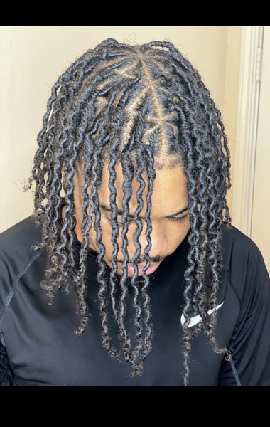 This service includes a retwist of either 2 strand twist , coils or triangle parts. Price subject to increase if hair is longer than shoulder length