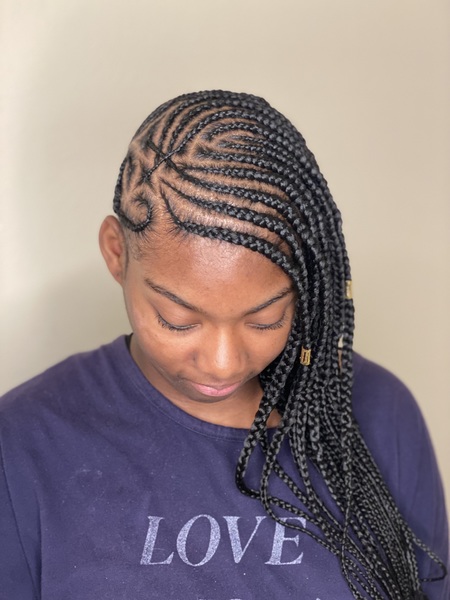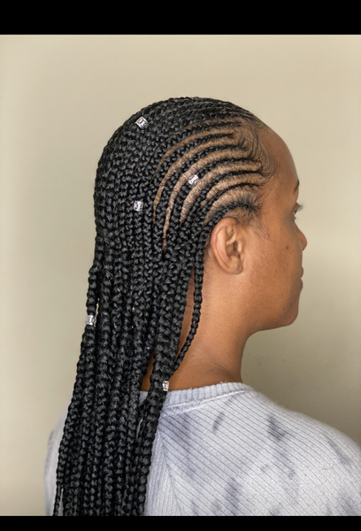 Cornrow braids uniquely designed for you. Size & Designs can vary Accessories available upon request. STARTING price : $80 is subject to change due to final style