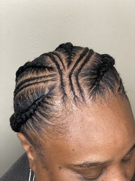 This service consist of natural hair cornrows straight back or individual twist. Price subject to change if designs added