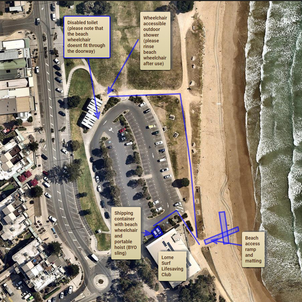 Welcome to the online booking system for the Lorne Accessible Beaches Trial. Simply click the green 'Book Now' button above, select your time and we will email you the code to open the shipping container where the beach wheelchair is located.In partnership with the Lorne Surf Life Saving Club, the Great Ocean Road Coast Committee is running a trial to test the suitability of beach wheelchair access at Lorne main beach.BEACH MATTINGWhere: adjacent to Lorne Surf Lifesaving Club, MountjoyParade, Lorne.When: available 7 days a week.Who: anyone can use the matting, however it particularly helps people with wheelchairs, prams, walking and mobility aids to pass over soft sand to get to the hard sand. Please do not tamper with or remove the matting.FLOATING BEACH WHEELCHAIRBooking: use is FREE but bookings are essential.Availability: available for hire on weekends and public holidays during lifesaving patrol hours only.Hoist: a hoist is available on site, however you will need to provide your own sling.Assistance: whilst the wheelchair is designed to be used independently, users with limited mobility will require the assistance of a carer/s to access the wheelchair and for water safety. Please make sure you read the terms and conditions: · The Great Ocean Road Coast Committee (GORCC) advises that the user of the beach wheelchair will need at least one person to assist accessing the wheelchair. At least 2 people will need to assist if taking the wheelchair into the water for safety.· The equipment is for independent use (with at least one support person required). There is no assistance from the Great Ocean Road Coast Committee or lifesavers to set up or use the equipment. Lifesavers may be able to assist with access to the water (during patrol hours), however this cannot be guaranteed.· Use of the portable hoist requires users to bring their own sling.· Whilst Lorne beach is a relatively safe beach for swimming, conditions can change quickly impacting the size of waves and currents. Users are advised to swim between the flags during patrolled hours only. Lifesaver instructions are to be followed at all times.· GORCC will make every effort to ensure that beach access matting remains in place and firmly secured, however there may be some disruption during large swells or other extreme weather conditions.· Users are requested to please fill out an anonymous feedback form, which will be supplied and can be submitted in the storage container on site where the chair is stored. Feedback is appreciated and important for us to further improve our the facilities and your experience.· Please contact the Great Ocean Road Coast Committee for enquiries or to report any damage or faulty equipment at info@gorcc.com.au or 03 5220 5055.· I have read the conditions of use and instructional video for use and understand that the beach wheel chair, beach access matting and portable hoist is set up for independent use without the assistance of GORCC or Lorne Surf Lifesaving Club. I agree to use the equipment at my own risk and return the equipment to the storage container at the end of my booking. I understand that a minimum of one support person is needed to access and use the equipment If you agree with the above terms, simply click the box on the confirmation page.Galeria