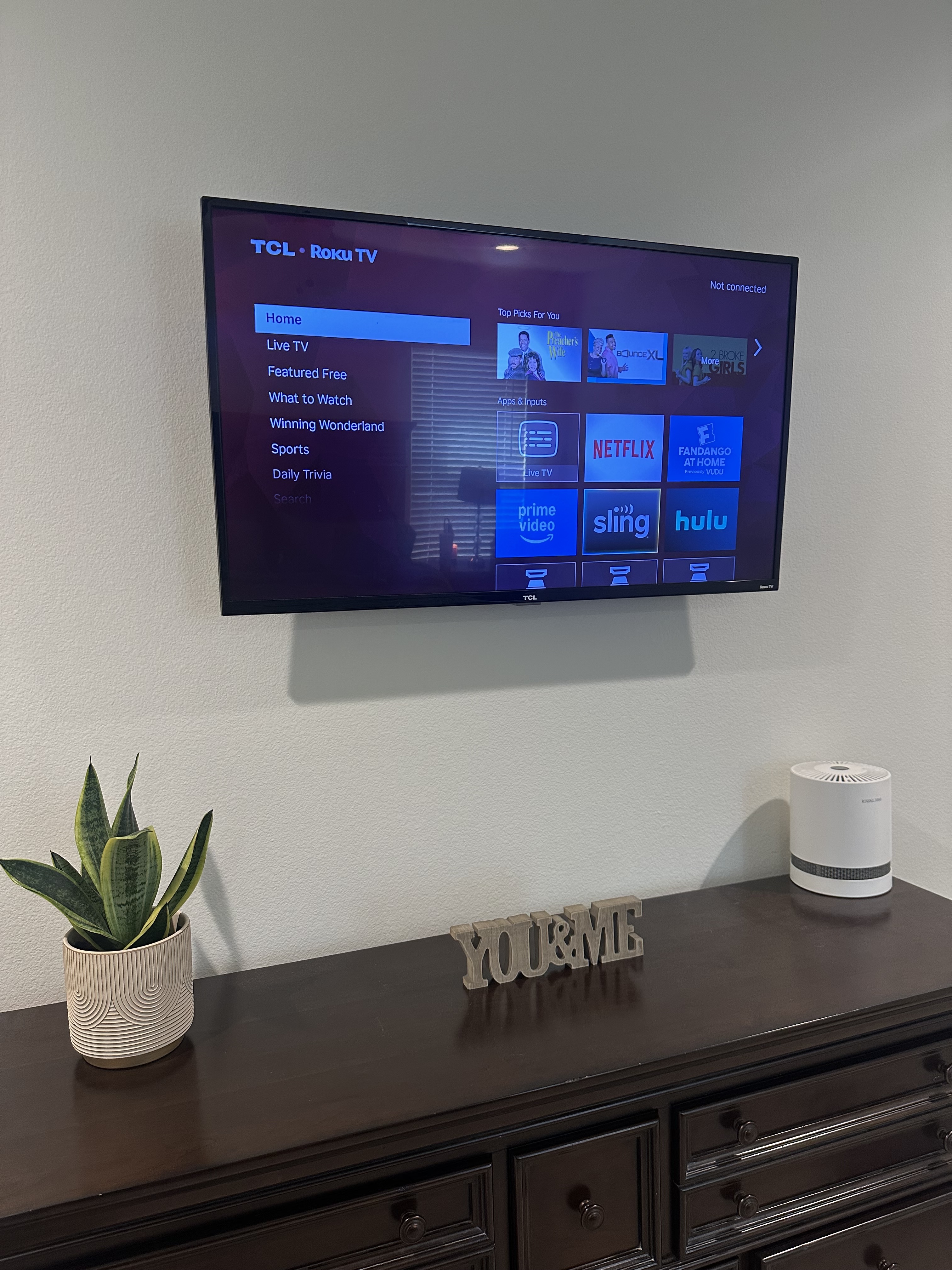 Our TV Mounting service for 55-inch or smaller TVs includes basic mounting and installation. We can conceal wires or offer wire cover options for a clean finish. Please note that this service does not include mounting brackets. Let us take the hassle