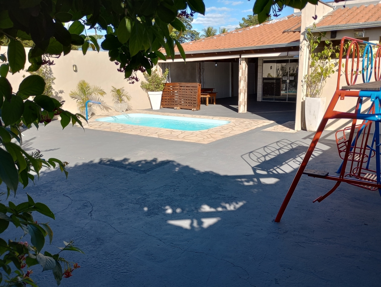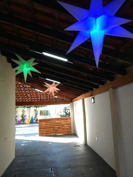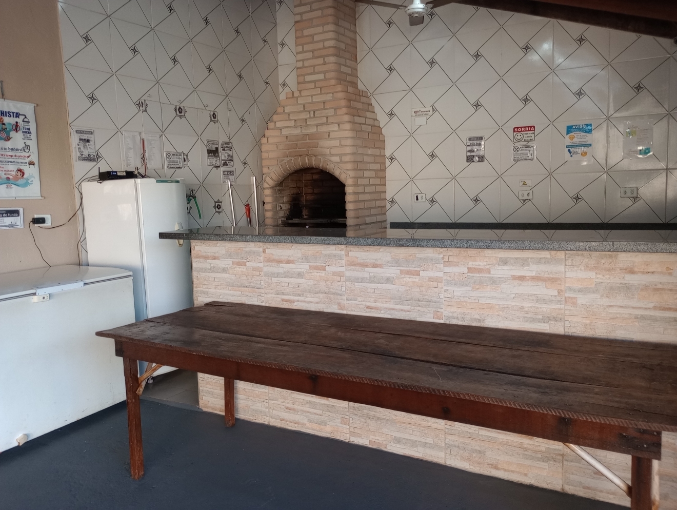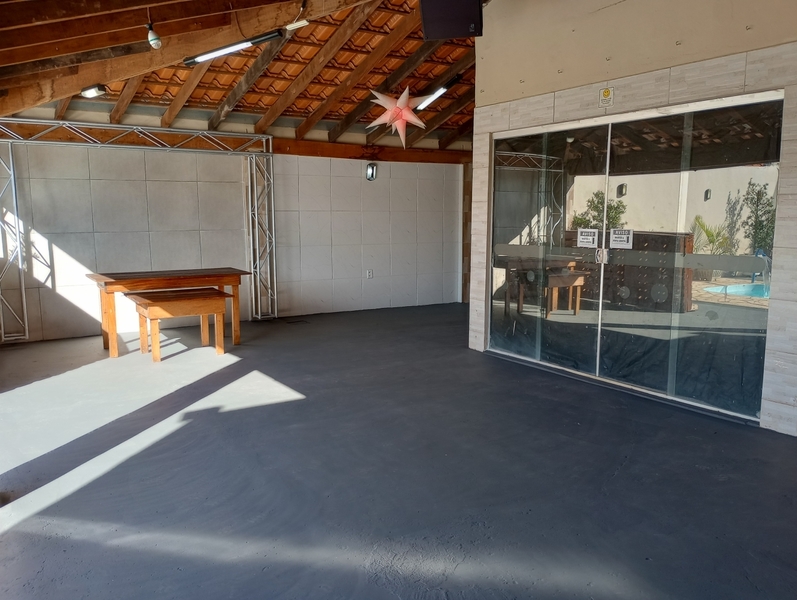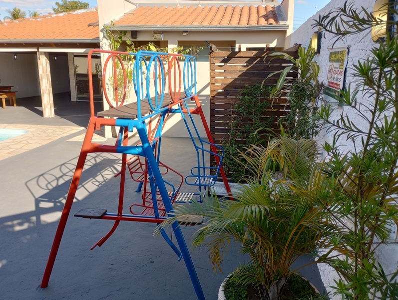 Veja Valores AquiRestrição: Só pode o Som do LocalÉ um som ambiente, ou seja, baixo, ideal para festa infantil, que não exige o som alto, não pode levar nenhum outro tipo de som.Veja datas Disponíveis aquiESPAÇO DE FESTACOM PULA PULA e PARQUE DE FERRO DE BRINDEVEJA VÍDEO DO ESPAÇO DE FESTAS ABALOU15 mesas, 60 cadeiras, 1 jogo de mesa de ferro, 3 mesas de madeira (p/ bolo, doces, buffet etc), pergolado, wifi, piscina fria tam.: 5,0m x 2,50m x 1,20m prof., cascata (automática conforme sol), veja vídeo. (não incluso escorregador e nem gangorra dino de plástico). Não incluso opcionais sala kids e nem jogo de luz, veja aquiDIÁRIA FRACIONADA PARA VOCÊ ECONOMIZAR Veja valores aqui.➡️ Horário de funcionamento do localDas 10h às 00h. Não podendo entrar antes das 10h e nem permanecer depois da meia noite. Consulte Termos e Condições de Abalou aqui. NÃO RESERVE ANTES DE VER COM A DECORADORA E COM BUFFETAntes de escolher quantas horas ou qual horário contratar, veja se eles podem levar, montar, cozinhar e retirar tudo dentro do horário escolhido, pois não é possível entrar antes e nem permanecer depois. NÃO É POSSÍVEL RETIRAR NO OUTRO DIA. E não é possível mudar o horário reservado, após o pagamento. Consulte Termos e Condições de Abalou aqui.MEIOS DE PAGAMENTOSCartão de Crédito e Débito e PIX.Veja Valores Aqui O LOCAL CONTÉM E/OU DISPONIBIlIZACOZINHA VEJA VÍDEO DA COZINHAFogão doméstico de 5 bocas já com gás, não funciona o forno, churrasqueira (não acompanha grelha nem espetos), filtro, freezer e geladeira veja vídeo. Ou clique aqui para Reservar.SOM JÁ INCLUSO EM TODOS OS PACOTESVEJA VÍDEO DO SOM - O JOGO DE LUZ É À PARTE, CONSULTE VALORSó pode o som do local é um som ambiente (BAIXO), com entrada Bluetooth e pendrive, já acompanha um pendrive com músicas adulto atualizadas, outro pendrive com músicas adulto vários ritmos separadas por pastas e outro pendrive com música infantil vários álbuns separadas por pastas. NÃO É POSSÍVEL LEVAR OUTRO SOM, NEM SOM DE CARRO NEM MESMO CAIXINHA TIPO JBL, MESMO QUE VIER A ACHAR O SOM DO LOCAL BAIXO. A altura máxima do som, é tão baixa que as pessoas conversam normalmente, mesmo sendo uma festa, por isso pense bem se esse som ambiente serve para o seu evento, antes de reservar, se for o caso, agende um horário pessoalmente para conhecer o local pelo Whatsapp: 34 988456070. Clique aqui para você ser direcionado ao Whatsapp da Abalou Festas. Consulte Termos e Condições de Abalou aqui.LOCAL COBERTO P/ ATÉ 60 PESSOAS+ 10 PESSOAS NA ÁREA EXTERNAÉ uma área em L coberta com cozinha gourmet e 2 banheiros, feminino e masculino e uma área externa com piscina, pula pula e parque de ferro. Veja fotos . Ou clique aqui para Reservar.ACOMODAÇÃONão tem quartos. Não é possível dormir no local. Não alugamos dois dias seguidos.ESTACIONAMENTOO Espaço não dispõe de um estacionamento, porém, é possível estacionar até 3 carros dentro do local, ocupando boa parte da área dos convidados. Reserve já.MONITORAMENTONo local há um sistema de Câmeras de segurança, mas não sendo possível o LOCATÁRIO ter acesso. Não disponibilizamos seguranças e nem monitores. Reserve já.LIMPEZA DO LOCAL E PISCINAO local é entregue limpo assim bem como a piscina e todos os pertences e a limpeza pós festa também é por nosso conta, isso mesmo não precisa limpar nada, não cobramos taxa de limpeza. Veja fotos . Ou clique aqui para Reservar.DICA VALIOSAPara saber quantas horas você vai precisar para fazer o seu evento acontecer, faça as contas:1º) Para montar a decoração, organizar as mesas com forros, Buffet ou Churrasco ou Salgado etc. PRECISA DE UM TEMPO DE +/- 2hs, se for fazer comida no local recomendamos UM TEMPO MAIOR DE +/- 4hs.2º) Receber os convidados, curtir o evento, cantar parabéns, despedir GASTA MAIS UM TEMPO DE +/- 5hs.3º) Retirar todos os pertences e deixar o local GASTA MAIS UM POUQUINHO DE TEMPO DE +/- 1h.Confira valores dos pacotes.Passo a passo para reservar clique aquiENTREGA DAS CHAVESA entrega das chaves é feita direto no local conforme horário contratado.Por exemplo: se você reservou das 17h às 24h, você pegará as chaves exatamente às 17h direto no Espaço de Festas Abalou e devolverá até às 24h do mesmo dia, não podendo pegar as chaves antes, caso não tenha adicionado mais horas no seu pacote, portanto se tiver que montar a decoração, já antecipe, e faça as contas ou fale com a decoradora ou com o buffet antes de fazer a reserva, se for preciso acrescente + HORAS. Confira valores dos pacotes.ESPAÇO PARA A MESA DO BOLOVeja fotos No local é possível acomodar a mesa do bolo decorada de até 4m de comprimento, com altura máxima de 2,25m e ainda receber 60 convidados no mesmo ambiente. Confira valores dos pacotes.ESPAÇO PARA BUFFETVeja fotos Um balcão de pedra separa a cozinha com a área no tamanho de 2,50m comp. junto a esse balcão, há uma mesa de madeira 2,50m x 0,72m, para acomodar tanto as comidas, rechaud como bebidas, talheres etc., ainda assim, cabem 60 pessoas no mesmo ambiente e mais a mesa do bolo decorada de até 4,0m de comprimento. Confira valores dos pacotes.MESAS DE MADEIRA PARA OS DOCES OU PRESENTESVeja fotosAcompanha uma mesa de madeira pequena 0,72m x 0,72m e outra média 1,50mx,0,72m que podem ser usadas para fazer a mesa dos doces ou dos presentes. Se não tiver chovendo ficam perfeitas na área externa debaixo do pergolado. Confira valores dos pacotes.OPCIONAIS DISPONÍVEIS AO COMPLETAR A RESERVA:Jogo de luz - R$ 50,00 - Pagamento integral no ato da reservaVeja vídeo do Jogo de luzAutomático é fixo na área, funcionamento à noite com:2 luzes giratórias coloridas;1 luz colorida que pisca e gira;1 Refletor de Led colorido oscilante;1 mini strobo branca;1 globo espelhado tamanho 15cm;1 canhão colorido par 26 cor âmbar;1 canhão colorido par 28 âmbar;Valor sujeito a alteração sem aviso prévio.Sala kids R$ 100,00. - Pagamento