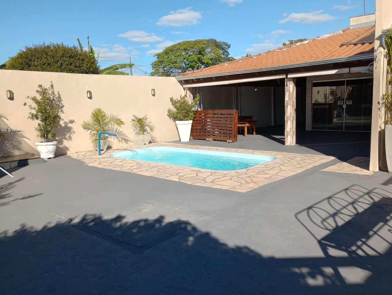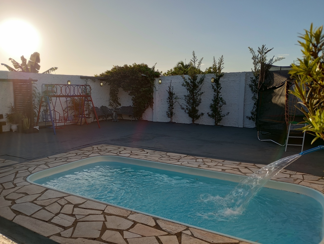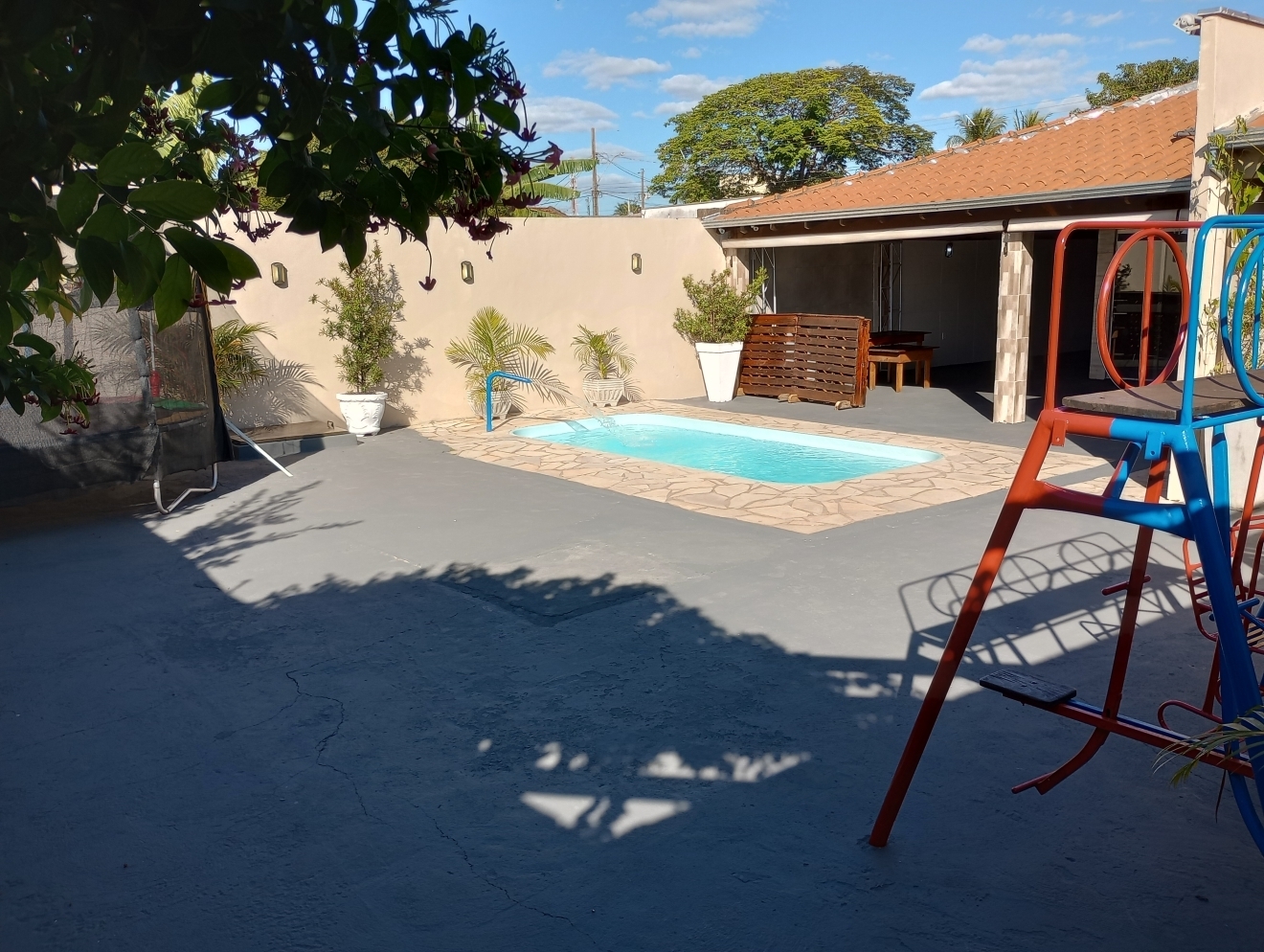 Veja Valores AquiRestrição: Só pode o Som do LocalÉ um som ambiente, ou seja, baixo, ideal para festa infantil, que não exige o som alto, não pode levar nenhum outro tipo de som.Veja datas Disponíveis aquiESPAÇO DE FESTACOM PULA PULA e PARQUE DE FERRO DE BRINDEVEJA VÍDEO DO ESPAÇO DE FESTAS ABALOU15 mesas, 60 cadeiras, 1 jogo de mesa de ferro, 3 mesas de madeira (p/ bolo, doces, buffet etc), pergolado, wifi, piscina fria tam.: 5,0m x 2,50m x 1,20m prof., cascata (automática conforme sol), veja vídeo. (não incluso escorregador e nem gangorra dino de plástico). Não incluso opcionais sala kids e nem jogo de luz, veja aquiDIÁRIA FRACIONADA PARA VOCÊ ECONOMIZAR Veja valores aqui.➡️ Horário de funcionamento do localDas 10h às 00h. Não podendo entrar antes das 10h e nem permanecer depois da meia noite. Consulte Termos e Condições de Abalou aqui. NÃO RESERVE ANTES DE VER COM A DECORADORA E COM BUFFETAntes de escolher quantas horas ou qual horário contratar, veja se eles podem levar, montar, cozinhar e retirar tudo dentro do horário escolhido, pois não é possível entrar antes e nem permanecer depois. NÃO É POSSÍVEL RETIRAR NO OUTRO DIA. E não é possível mudar o horário reservado, após o pagamento. Consulte Termos e Condições de Abalou aqui.MEIOS DE PAGAMENTOSCartão de Crédito e Débito e PIX.Veja Valores Aqui O LOCAL CONTÉM E/OU DISPONIBIlIZACOZINHA VEJA VÍDEO DA COZINHAFogão doméstico de 5 bocas já com gás, não funciona o forno, churrasqueira (não acompanha grelha nem espetos), filtro, freezer e geladeira veja vídeo. Ou clique aqui para Reservar.SOM JÁ INCLUSO EM TODOS OS PACOTESVEJA VÍDEO DO SOM - O JOGO DE LUZ É À PARTE, CONSULTE VALORSó pode o som do local é um som ambiente (BAIXO), com entrada Bluetooth e pendrive, já acompanha um pendrive com músicas adulto atualizadas, outro pendrive com músicas adulto vários ritmos separadas por pastas e outro pendrive com música infantil vários álbuns separadas por pastas. NÃO É POSSÍVEL LEVAR OUTRO SOM, NEM SOM DE CARRO NEM MESMO CAIXINHA TIPO JBL, MESMO QUE VIER A ACHAR O SOM DO LOCAL BAIXO. A altura máxima do som, é tão baixa que as pessoas conversam normalmente, mesmo sendo uma festa, por isso pense bem se esse som ambiente serve para o seu evento, antes de reservar, se for o caso, agende um horário pessoalmente para conhecer o local pelo Whatsapp: 34 988456070. Clique aqui para você ser direcionado ao Whatsapp da Abalou Festas. Consulte Termos e Condições de Abalou aqui.LOCAL COBERTO P/ ATÉ 60 PESSOAS+ 10 PESSOAS NA ÁREA EXTERNAÉ uma área em L coberta com cozinha gourmet e 2 banheiros, feminino e masculino e uma área externa com piscina, pula pula e parque de ferro. Veja fotos . Ou clique aqui para Reservar.ACOMODAÇÃONão tem quartos. Não é possível dormir no local. Não alugamos dois dias seguidos.ESTACIONAMENTOO Espaço não dispõe de um estacionamento, porém, é possível estacionar até 3 carros dentro do local, ocupando boa parte da área dos convidados. Reserve já.MONITORAMENTONo local há um sistema de Câmeras de segurança, mas não sendo possível o LOCATÁRIO ter acesso. Não disponibilizamos seguranças e nem monitores. Reserve já.LIMPEZA DO LOCAL E PISCINAO local é entregue limpo assim bem como a piscina e todos os pertences e a limpeza pós festa também é por nosso conta, isso mesmo não precisa limpar nada, não cobramos taxa de limpeza. Veja fotos . Ou clique aqui para Reservar.DICA VALIOSAPara saber quantas horas você vai precisar para fazer o seu evento acontecer, faça as contas:1º) Para montar a decoração, organizar as mesas com forros, Buffet ou Churrasco ou Salgado etc. PRECISA DE UM TEMPO DE +/- 2hs, se for fazer comida no local recomendamos UM TEMPO MAIOR DE +/- 4hs.2º) Receber os convidados, curtir o evento, cantar parabéns, despedir GASTA MAIS UM TEMPO DE +/- 5hs.3º) Retirar todos os pertences e deixar o local GASTA MAIS UM POUQUINHO DE TEMPO DE +/- 1h.Confira valores dos pacotes.Passo a passo para reservar clique aquiENTREGA DAS CHAVESA entrega das chaves é feita direto no local conforme horário contratado.Por exemplo: se você reservou das 17h às 24h, você pegará as chaves exatamente às 17h direto no Espaço de Festas Abalou e devolverá até às 24h do mesmo dia, não podendo pegar as chaves antes, caso não tenha adicionado mais horas no seu pacote, portanto se tiver que montar a decoração, já antecipe, e faça as contas ou fale com a decoradora ou com o buffet antes de fazer a reserva, se for preciso acrescente + HORAS. Confira valores dos pacotes.ESPAÇO PARA A MESA DO BOLOVeja fotos No local é possível acomodar a mesa do bolo decorada de até 4m de comprimento, com altura máxima de 2,25m e ainda receber 60 convidados no mesmo ambiente. Confira valores dos pacotes.ESPAÇO PARA BUFFETVeja fotos Um balcão de pedra separa a cozinha com a área no tamanho de 2,50m comp. junto a esse balcão, há uma mesa de madeira 2,50m x 0,72m, para acomodar tanto as comidas, rechaud como bebidas, talheres etc., ainda assim, cabem 60 pessoas no mesmo ambiente e mais a mesa do bolo decorada de até 4,0m de comprimento. Confira valores dos pacotes.MESAS DE MADEIRA PARA OS DOCES OU PRESENTESVeja fotosAcompanha uma mesa de madeira pequena 0,72m x 0,72m e outra média 1,50mx,0,72m que podem ser usadas para fazer a mesa dos doces ou dos presentes. Se não tiver chovendo ficam perfeitas na área externa debaixo do pergolado. Confira valores dos pacotes.OPCIONAIS DISPONÍVEIS AO COMPLETAR A RESERVA:Jogo de luz - R$ 50,00 - Pagamento integral no ato da reservaVeja vídeo do Jogo de luzAutomático é fixo na área, funcionamento à noite com:2 luzes giratórias coloridas;1 luz colorida que pisca e gira;1 Refletor de Led colorido oscilante;1 mini strobo branca;1 globo espelhado tamanho 15cm;1 canhão colorido par 26 cor âmbar;1 canhão colorido par 28 âmbar;Valor sujeito a alteração sem aviso prévio.Sala kids R$ 100,00. - Pagamento
