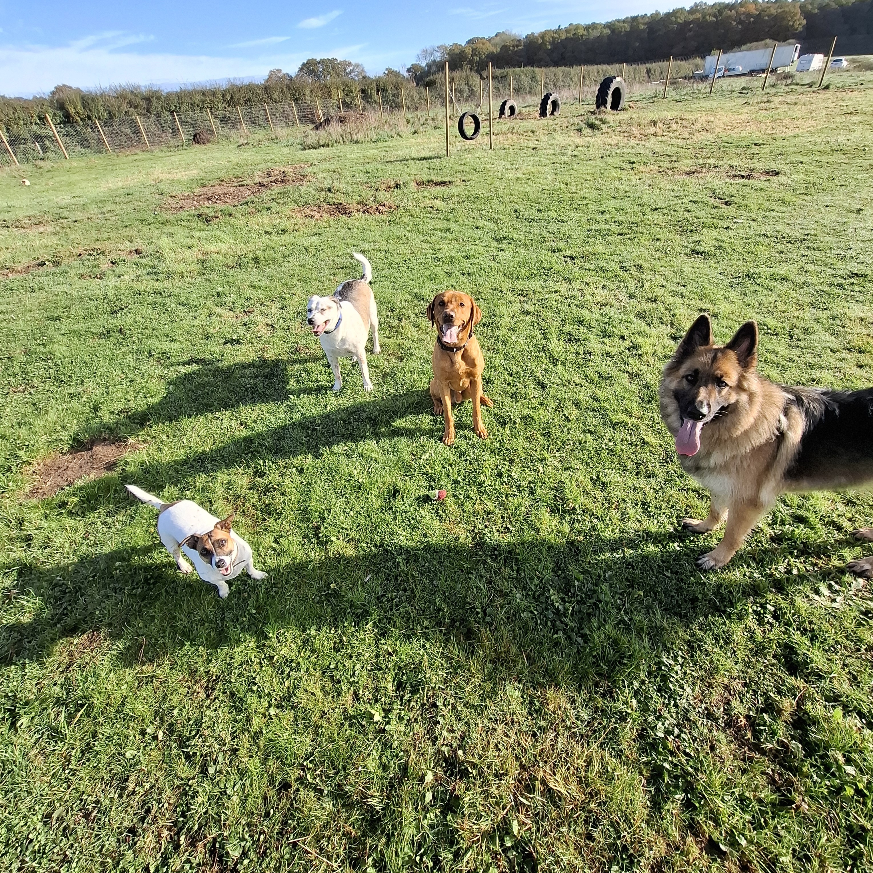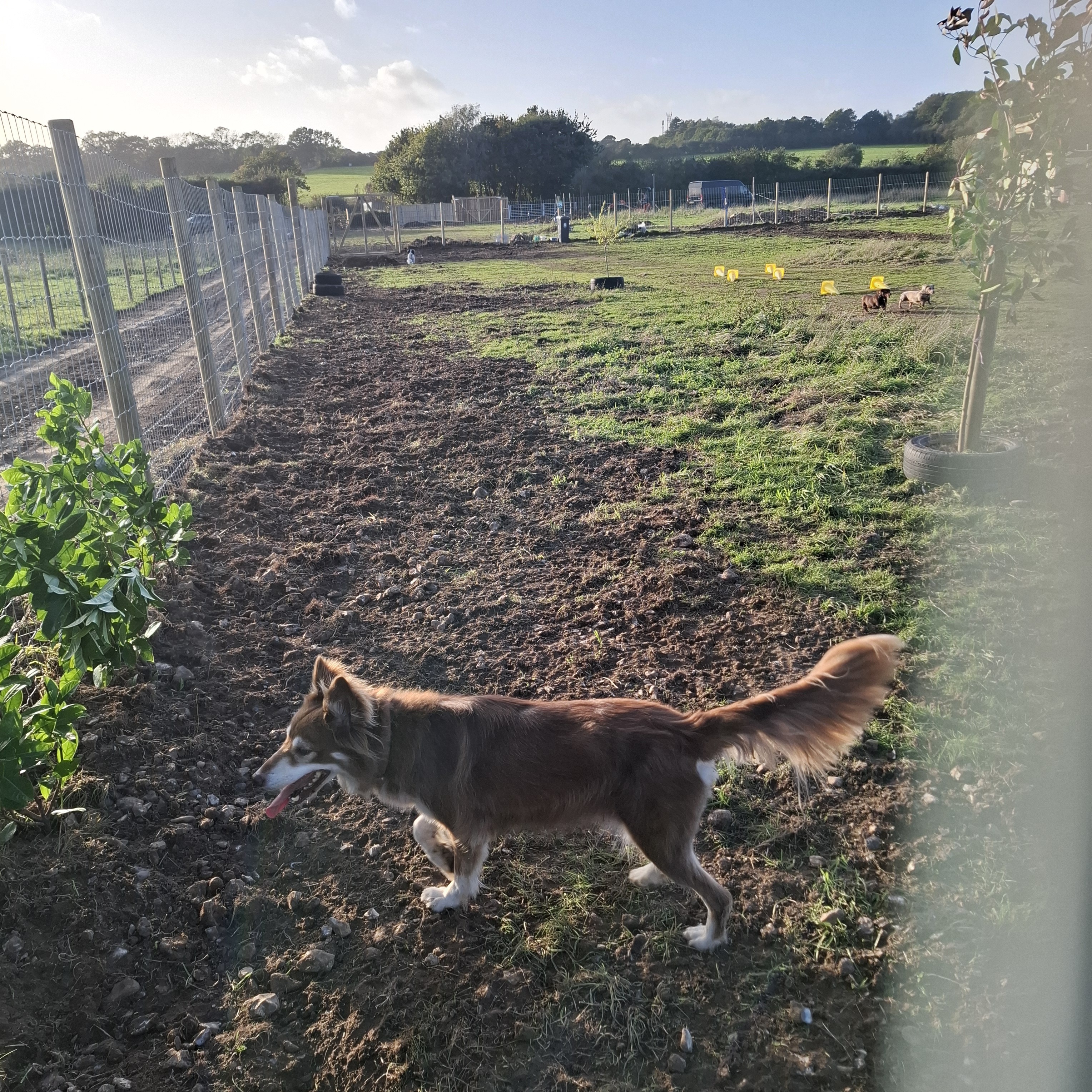 A Dos Day Dog Park is Rowlands Castle’s go-to destination for safe, off-leash fun. Our secure, well-kept setting gives dogs the space to run, sniff, and play while you relax with total peace of mind. Perfect for energetic explorers, puppies in training, or reactive dogs who need a calm, controlled environment.We offer a 6ft fenced secure paddock, parking inside paddock and extra parking outside paddock, water and bins provided.Choose from private hire time slots or small, friendly sessions—each designed to fit your routine and your dog’s needs. We keep things simple with clear guidelines, a welcoming atmosphere, and a focus on cleanliness and safety.Booking is quick and flexible, with convenient time options and straightforward pricing. Give your best friend the freedom they deserve and make every outing a great one.Make it a dog’s day—book your session at adogsdaydogpark today and discover why local pet parents love our park in Rowlands Castle.Galeria