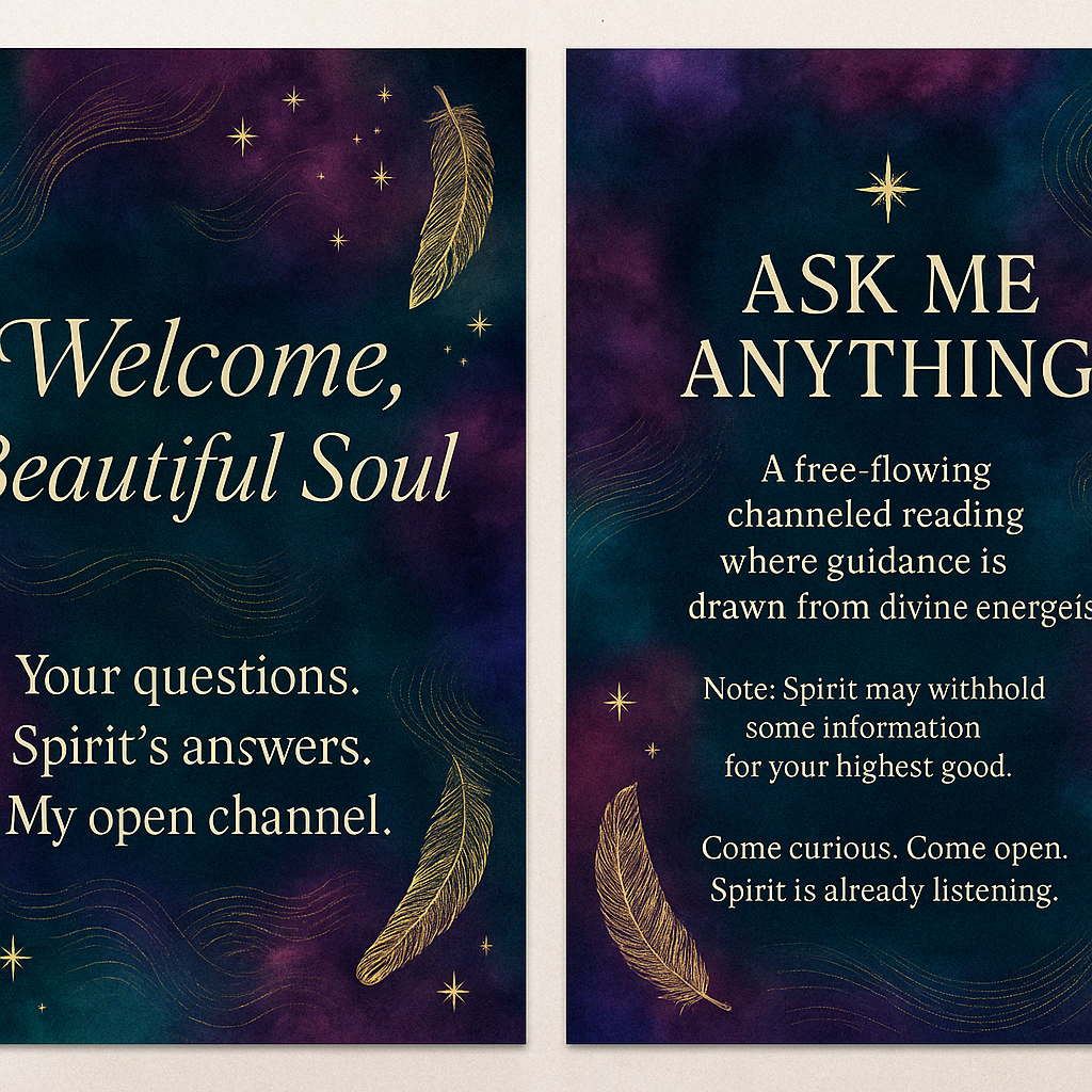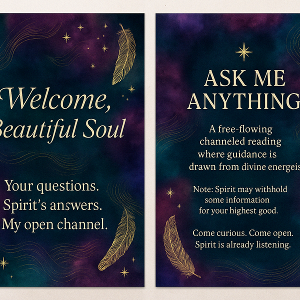 ✨ Ask Me Anything: A Spirit-Led Channeling SessionReal-time messages from Spirit — guided by your questions, received through intuitive flow.Have a burning question on your heart? A mystery you’re ready to unravel? Or maybe you just need divine clari
