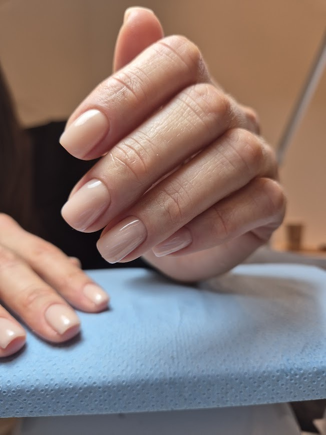 Procedūra sastāv no liekā materiāla saudzīgas noņemšanas, nagu formas izveidošanas un caurspīdīgā nagu stiprinātāja uzlikšanas. Ja vēlas papildus kutikulas apstrādi, tad kopējā summa 30EUR