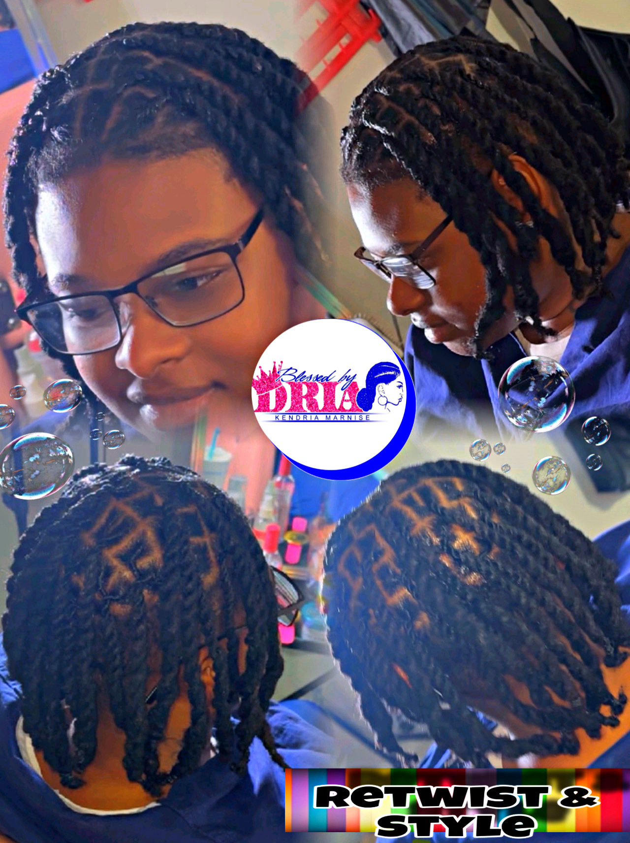 Men Retwist Our Men Retwist service is designed to refresh, neaten, and maintain your locs with precision and care. Skilled stylists work to retwist new growth and provide a clean, polished look, all while ensuring the health of your hair. This serv