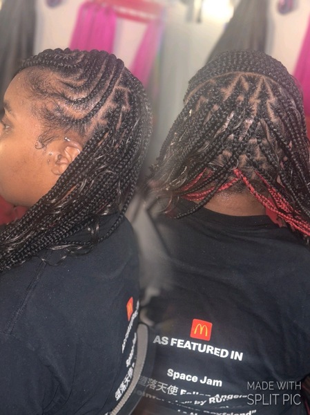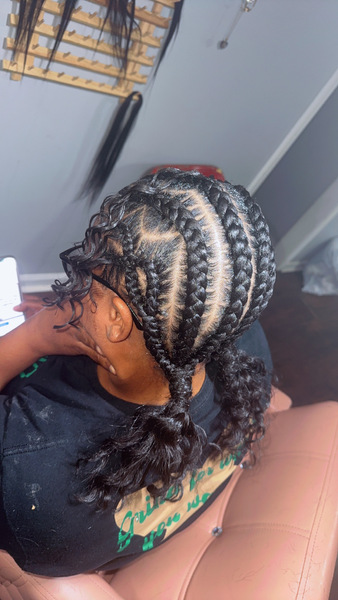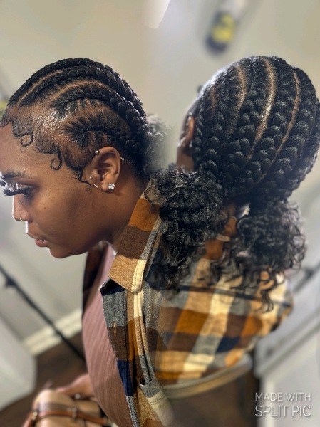Feed-in Braids: Enjoy a sleek, protective hairstyle tailored to your preference, featuring your choice of style with 4 to 8 beautifully crafted braids. Our service includes high-quality hair provided by us, ensuring a seamless and lasting look. Perfe